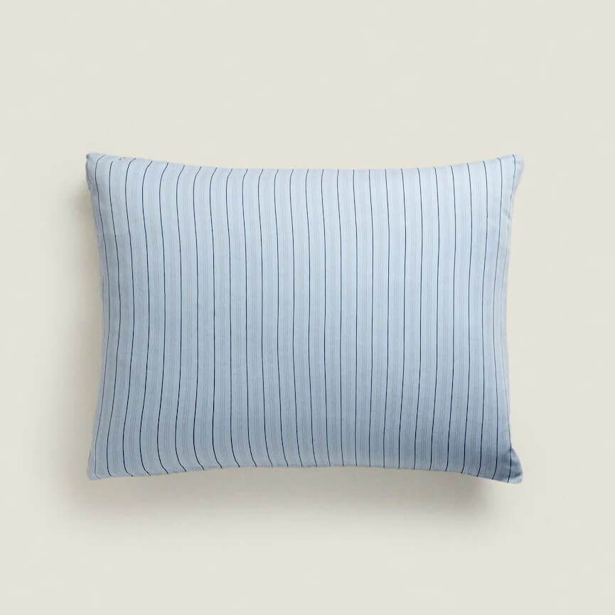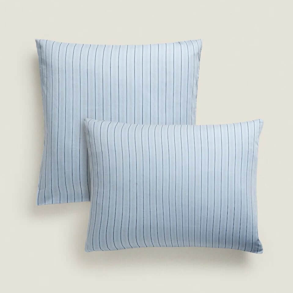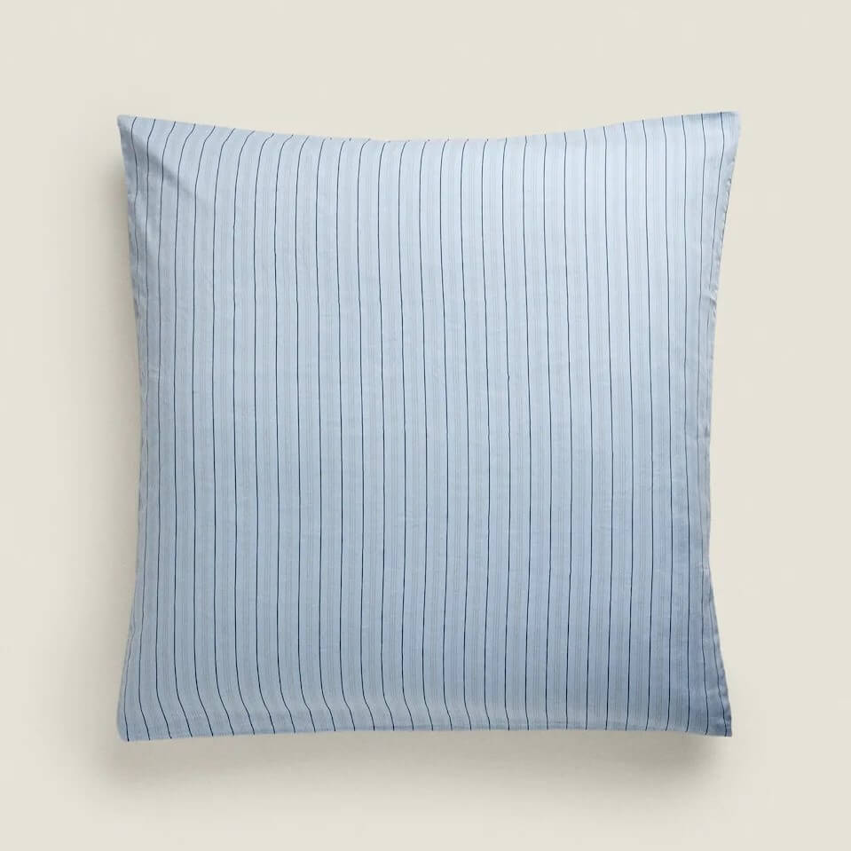 Наволочка из стираного сатина плотностью 300 нитей с узором в вертикальные полоски из окрашенных ниток. Ограниченный выпуск. Процесс стирки сатина делает его мягким на ощупь, а также придает ему более привлекательный вид.