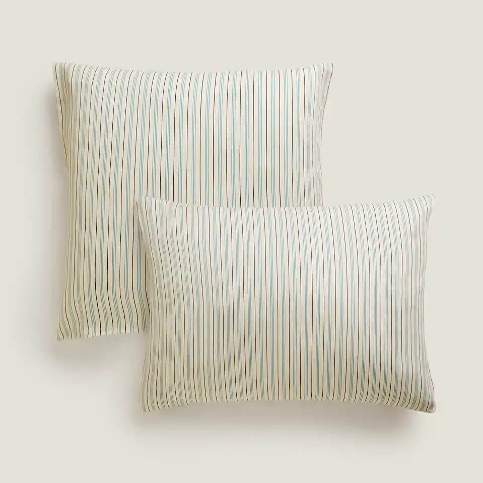 Наволочка из стираного сатина плотностью 300 нитей с узором в вертикальные полоски из окрашенных ниток. Ограниченный выпуск. Процесс стирки сатина делает его мягким на ощупь, а также придает ему более привлекательный вид.