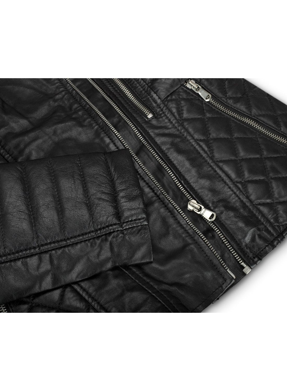 • 100% натуральная мягкая на ощупь кожа, отделка из натуральной кожи цвета угольно-черного цвета • Узкий крой (для более удобной посадки выбирайте на 1 размер больше) • 5 передних карманов на молнии • Внутренние карманы для надежного хранения • Отделка швами на рукавах и плечах