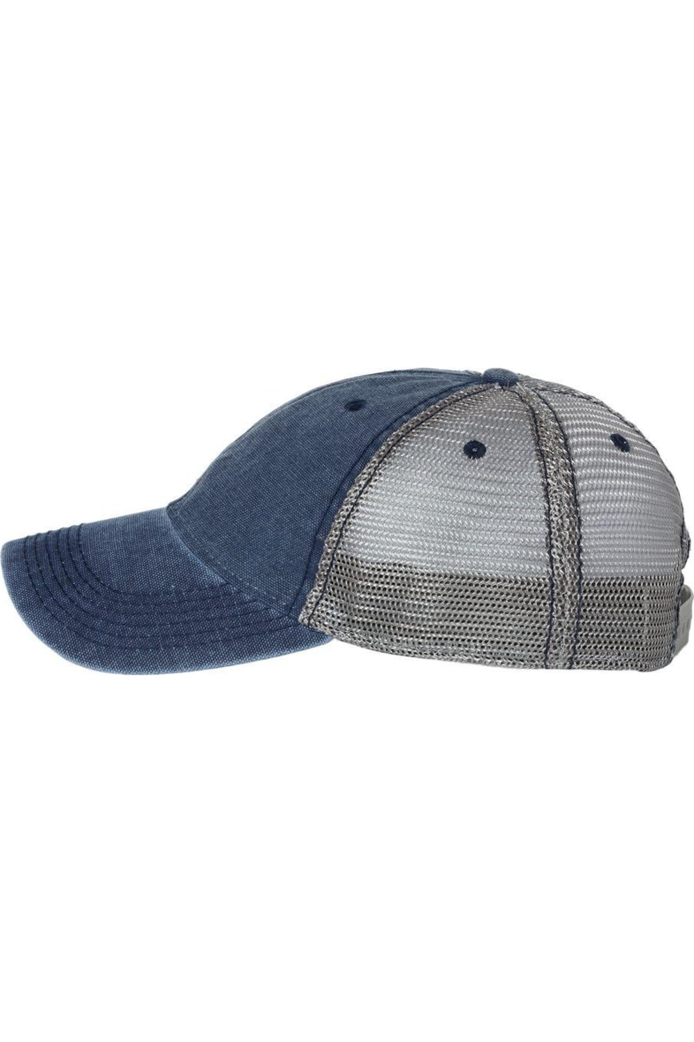 65/35 Хлопок/полиэстер. Тулья и сетка из стираного холста. Неструктурированная, из шести панелей, с низким профилем. Предварительно изогнутый козырек. Застежка-кнопка. **Ало-красный/синий — контрастная строчка на тулье и козырьке.