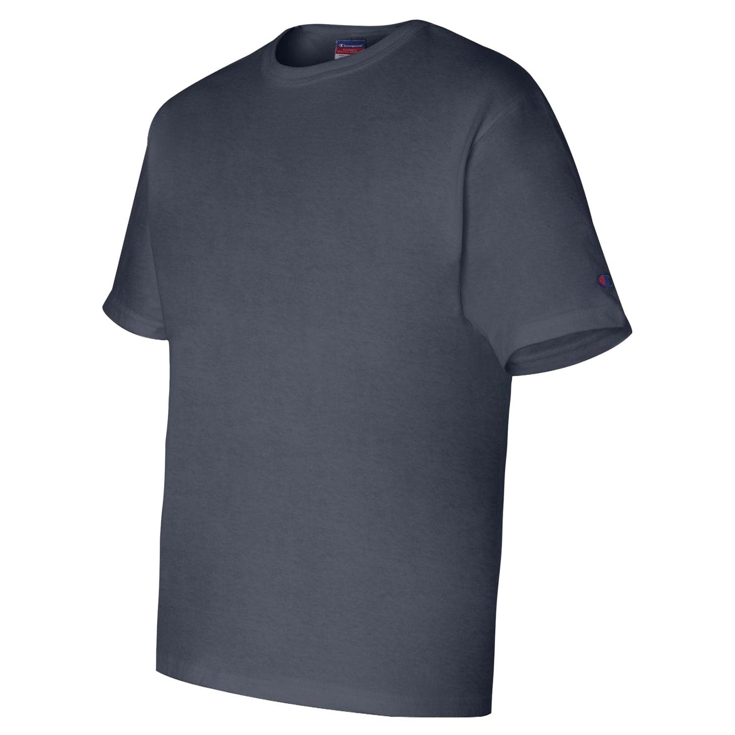 7 унций/ярд (США), 11,7 унций/литр ярд (КАНАЛ), 100% хлопок. Круглый вырез горловины с резинкой шириной 1 дюйм. Глубокие проймы. Рукава и нижний край прошиты двойной иглой. Логотип Champion C на левом рукаве.