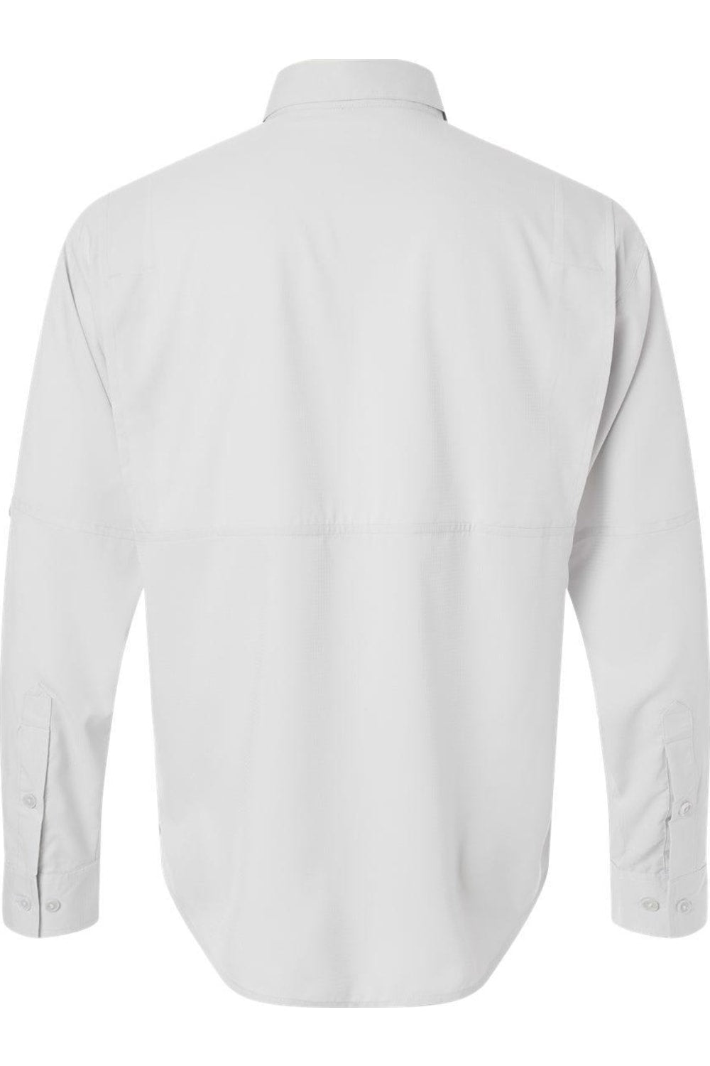 2,4 унции/ярд, 100% полиэстер с высокой прочностью рипстоп. Свойства Paragon Plus для управления влагой. Антимикробная и не мнется отделка. Защита UPF 40+. Окрашенные в тон пуговицы. Разрезы на плечах сзади с сетчатой ​​вставкой. Держатель для удочки на липучке.