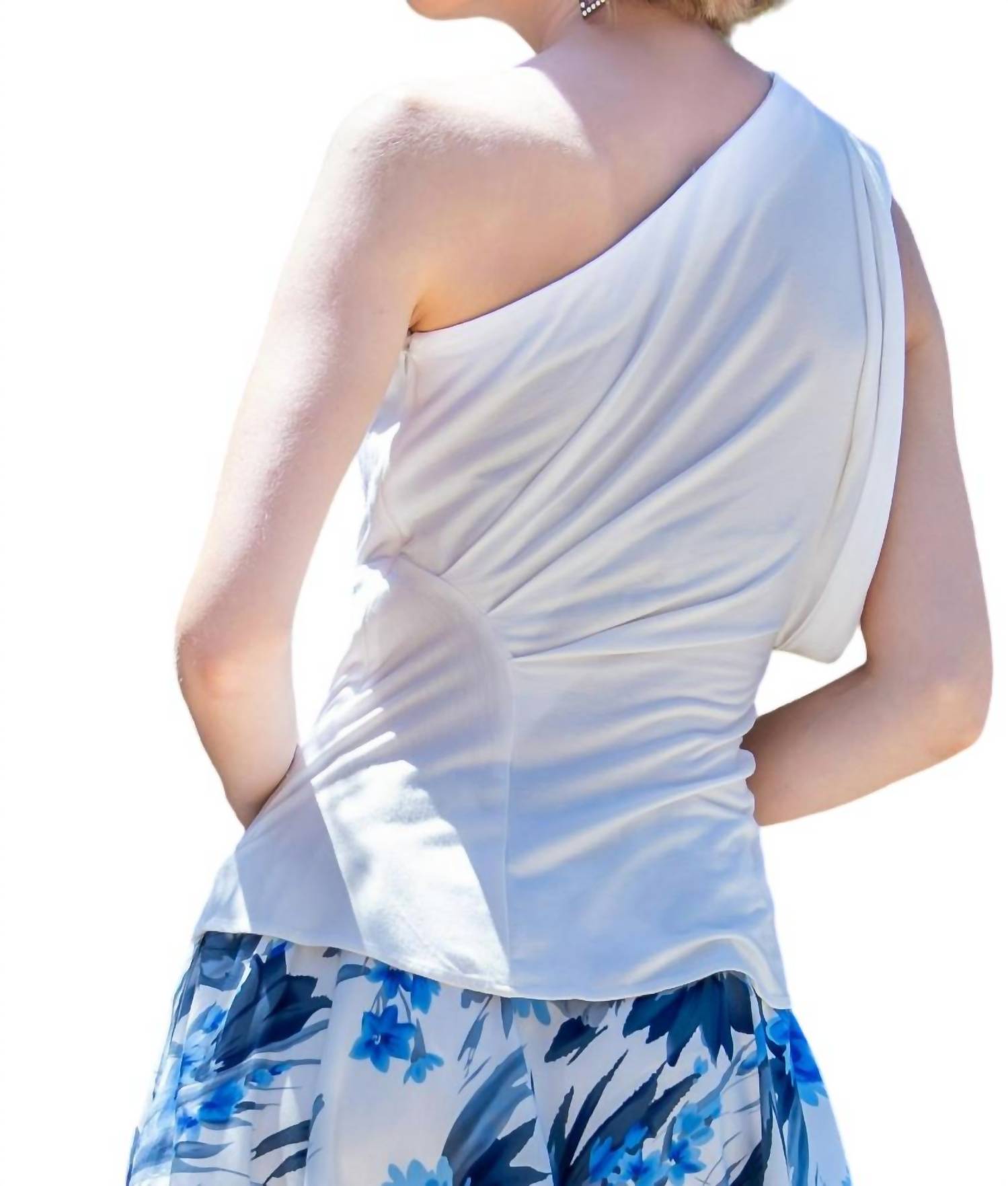 Топ Daphne излучает гламур благодаря своему дизайну на одно плечо с драпированными складками, ниспадающими с плеча и элегантно обертывающими талию. Он обеспечивает приятную посадку благодаря резинке на груди и удобной молнии сбоку. Изделие изготовлено из 90% полиэстера и 10% эластана, рекомендуется для химчистки и с гордостью производится в США.