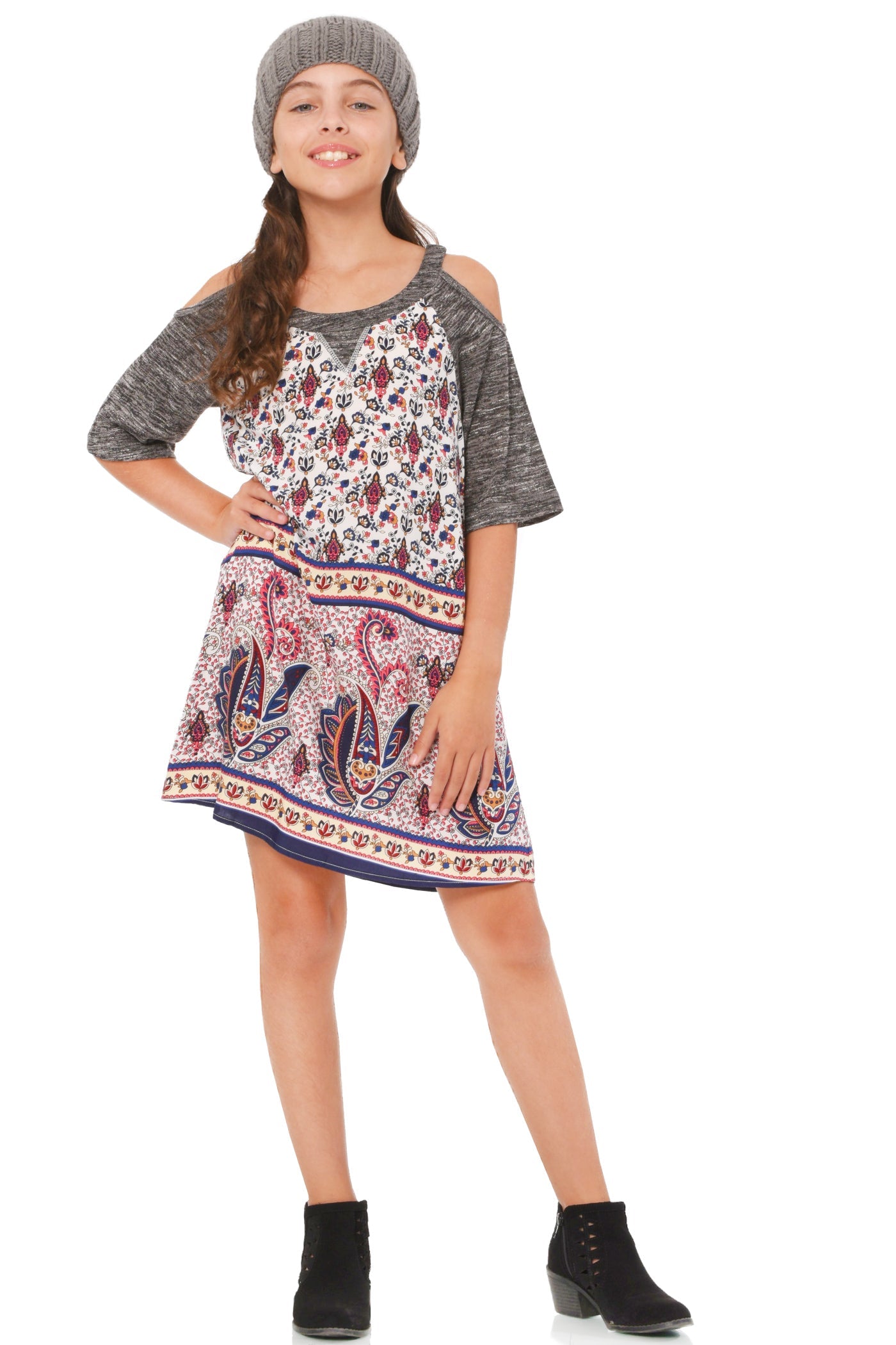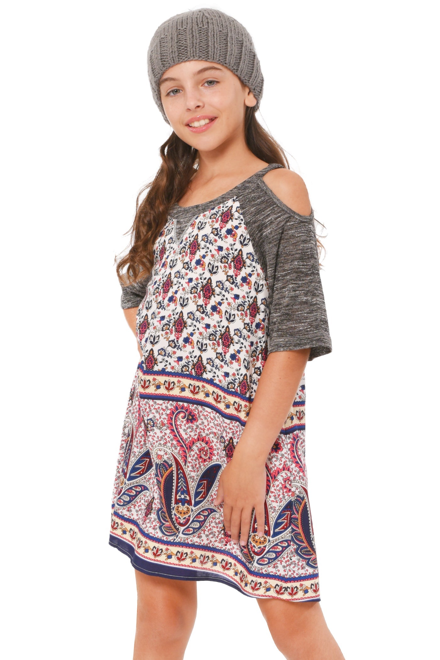 Платье А-силуэта с открытыми плечами для больших девочек Truly Me, цвет grey multi