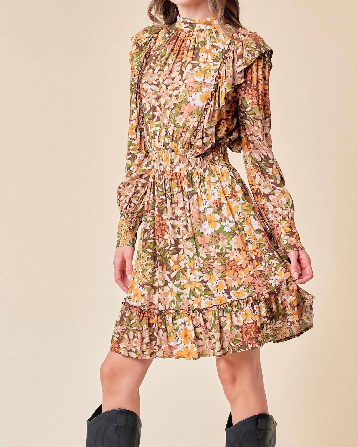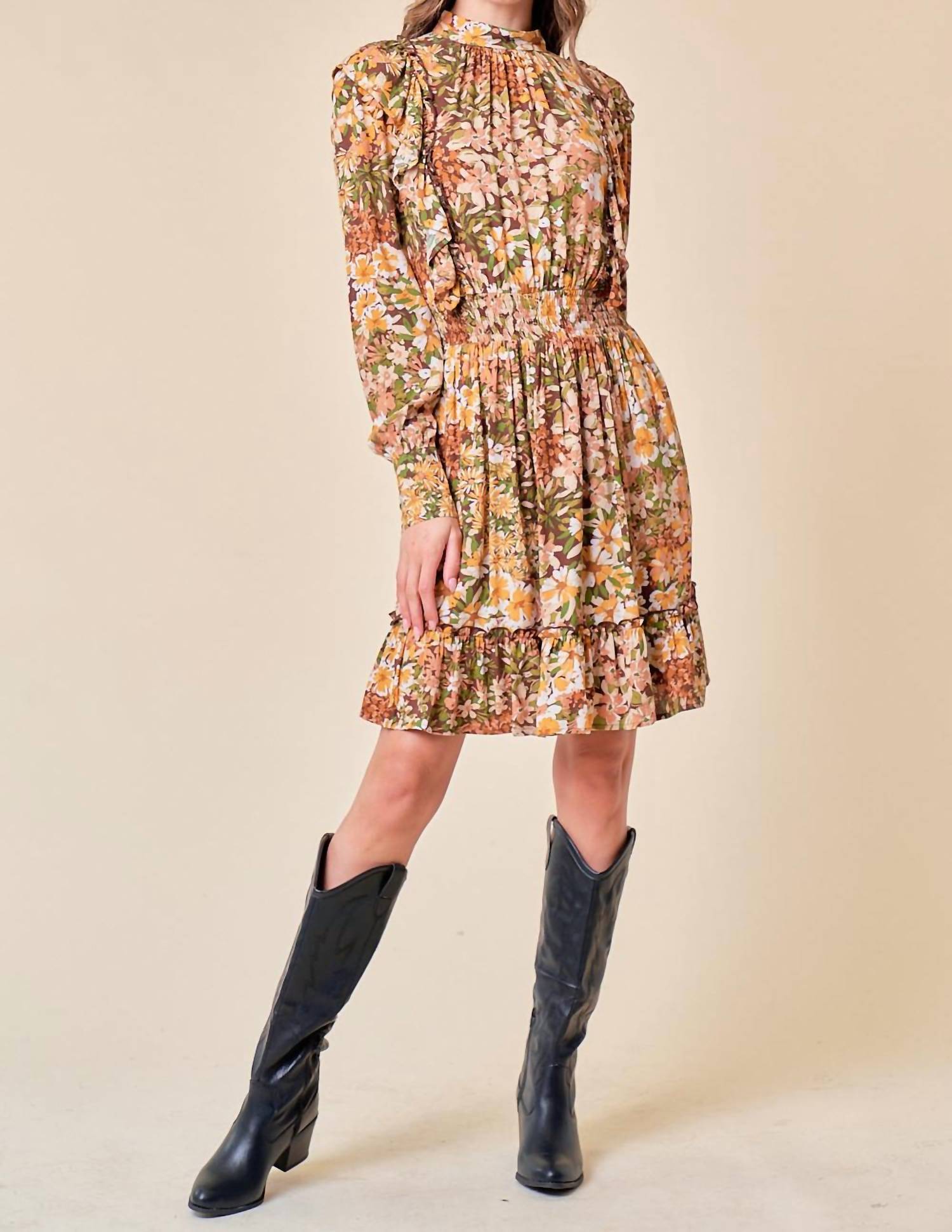 Познакомьтесь с платьем Emilia, ярким силуэтом А-силуэта с восхитительным цветочным принтом. С длинными рукавами и воротником-стойкой, это стильный выбор для любого случая. Изготовлено из 100% вискозы с подкладкой из 100% полиэстера, тщательно продуманный дизайн с застежкой на пуговицы для бесшовной посадки. Стирать вручную в холодной воде и сушить на веревке, чтобы сохранить его потрясающий внешний вид.