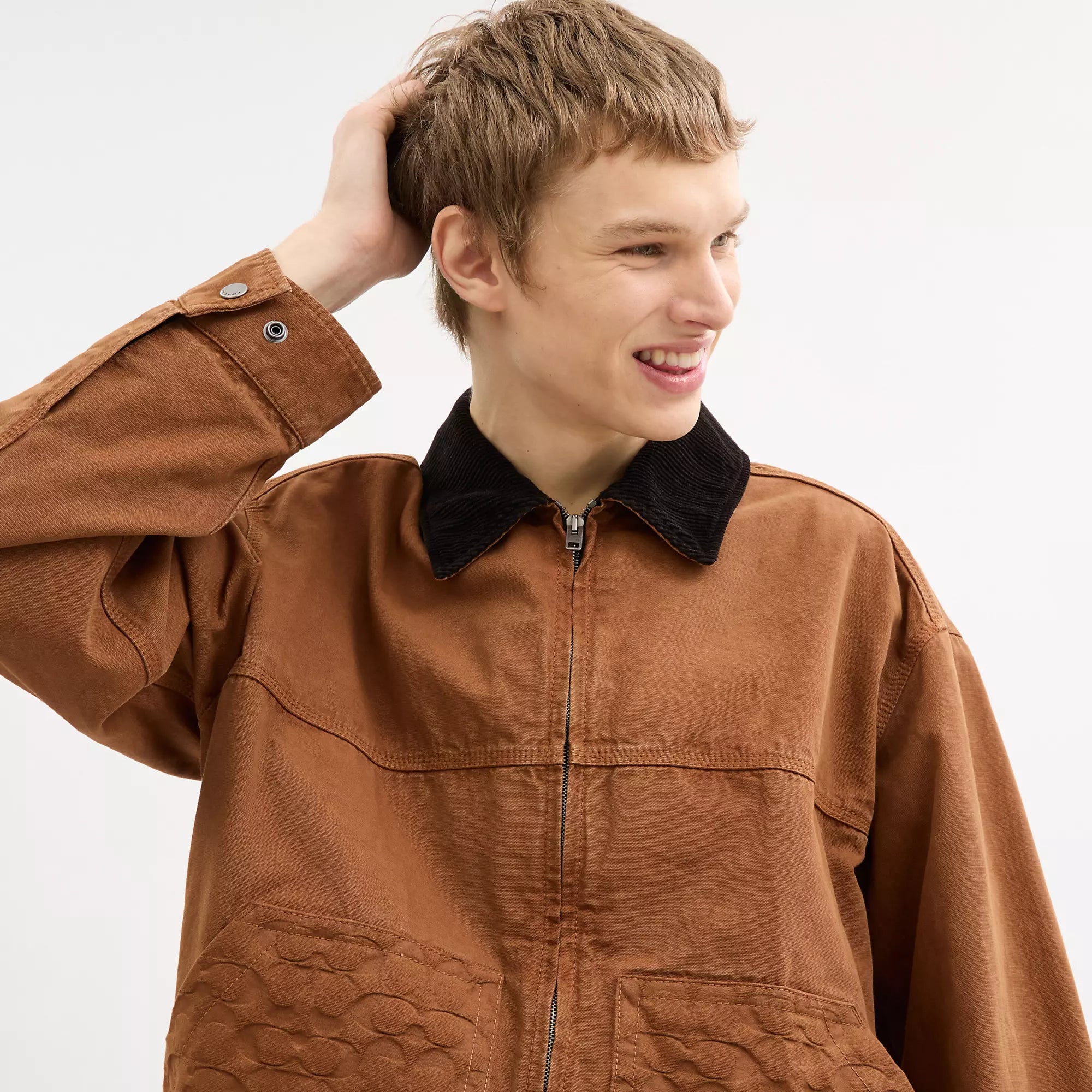 100% хлопок Подкладка корпуса: 100% хлопок Подкладка рукавов/подкладка карманов: 56% переработанный полиэстер 44% вискоза Кожаные детали Застежки-молнии и кнопки Накладные карманы Длина: 27 Машинная стирка Модель ростом 6 футов 2 дюйма (188 см) носит размер M Модель № CW691 | Coach Outlet Куртка для работы - коричневая, размер - X-Large