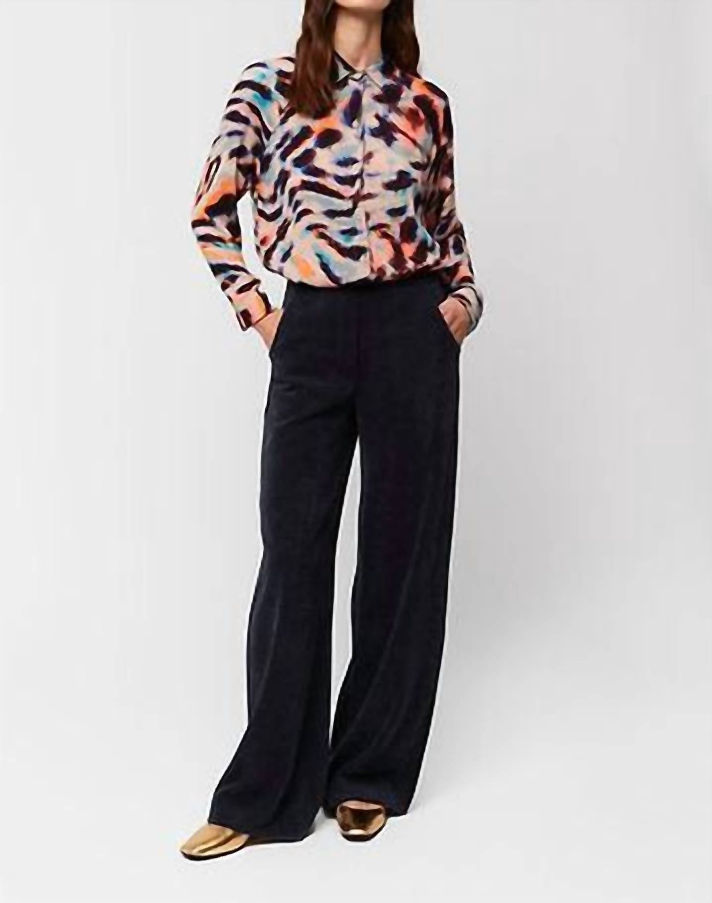 Вечная блузка, которая никогда не выйдет из моды. Представляем блузку Chloe Button Front от Aldo Martins, легкую и струящуюся модель с ярким принтом зебры. Эта блузка с длинными рукавами изготовлена ​​из 100% вискозы для роскошного вида. С классической застежкой на пуговицы и воротником-стойкой, она сделана в Испании для нотки европейской элегантности. Ухаживайте за этой моделью, стирая ее вручную в холодной воде, чтобы сохранить ее яркость.