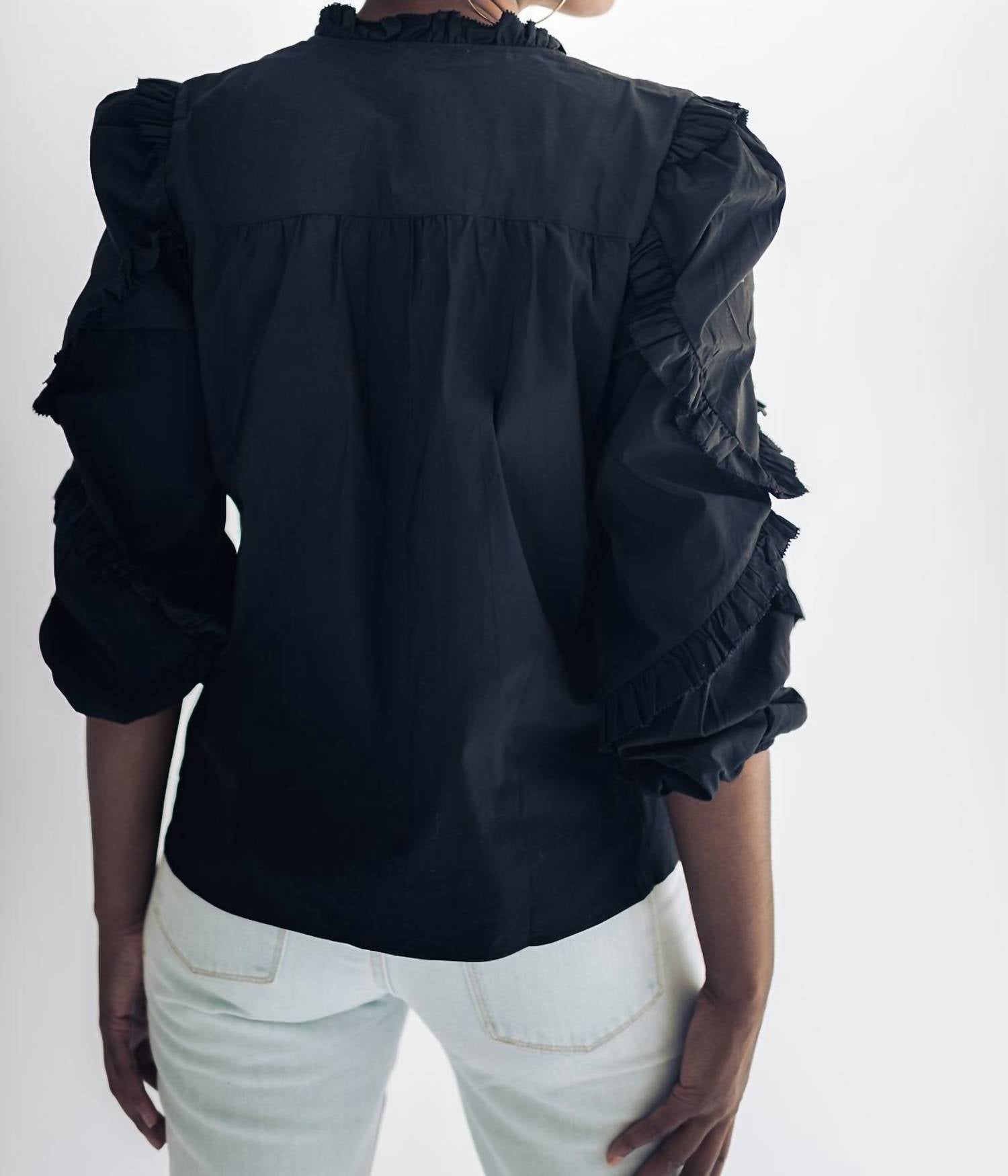 Вечная блузка, которая никогда не выйдет из моды. Представляем топ Ruby Peasant от Falcon Park, идеальное сочетание комфорта и шикарного стиля. Этот черный топ с рукавами три четверти и очаровательной деталью в виде оборки на рукавах изготовлен из хлопковой смеси, состоящей из 69% хлопка, 24% нейлона и 4% спандекса. Изделие имеет универсальный V-образный вырез с дополнительной завязкой на шее и имеет длину 23 дюйма от плеча до подола для среднего размера. Этот топ с однотонным узором — стильная вещь для любого гардероба.