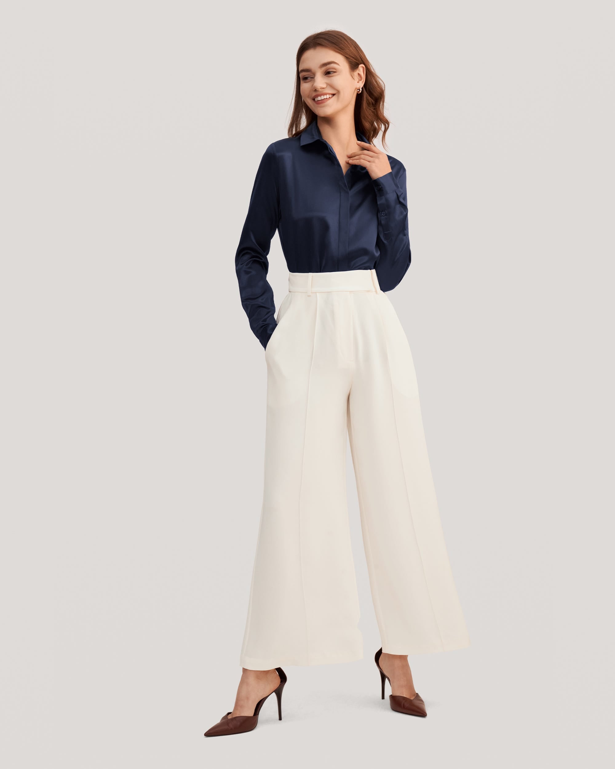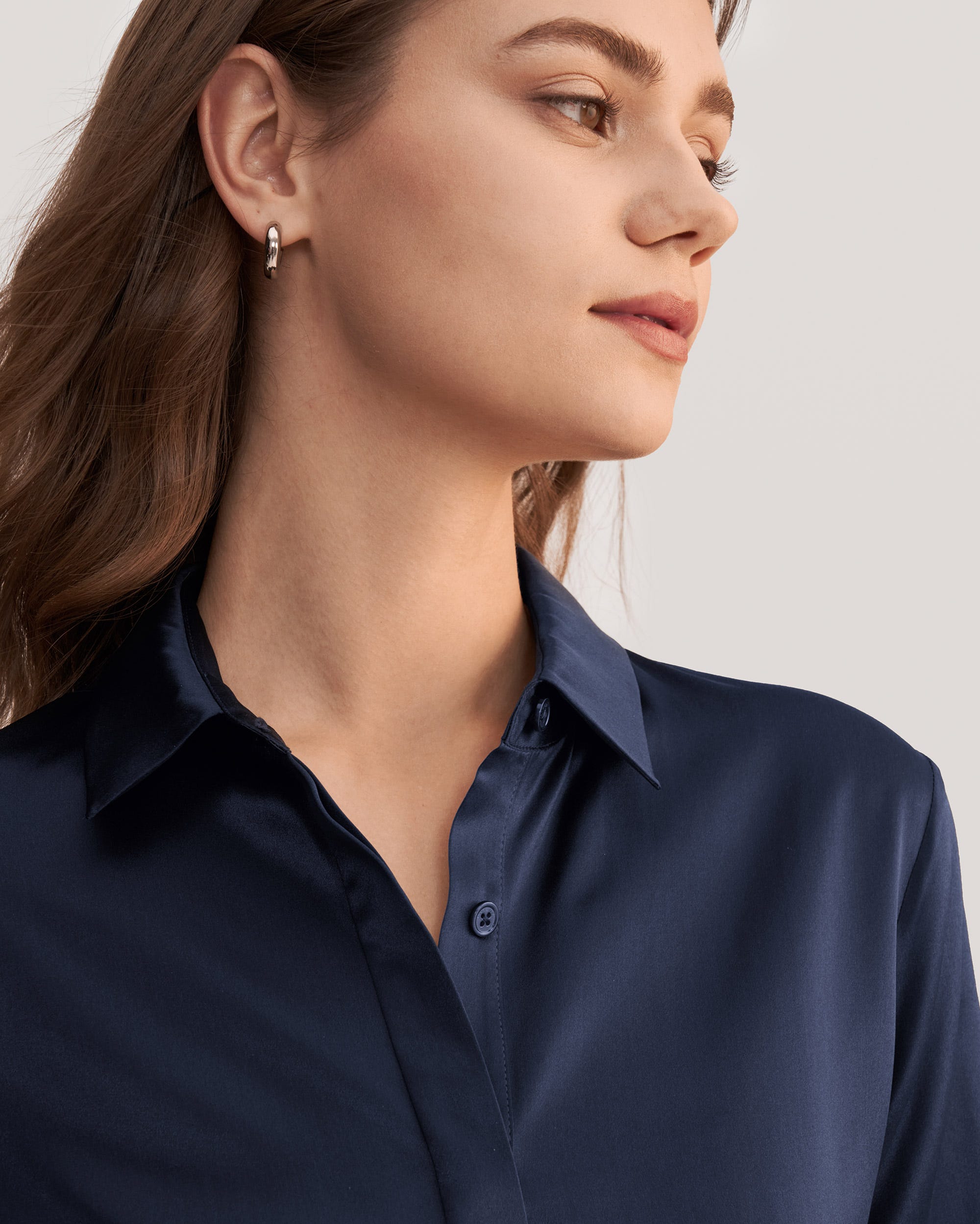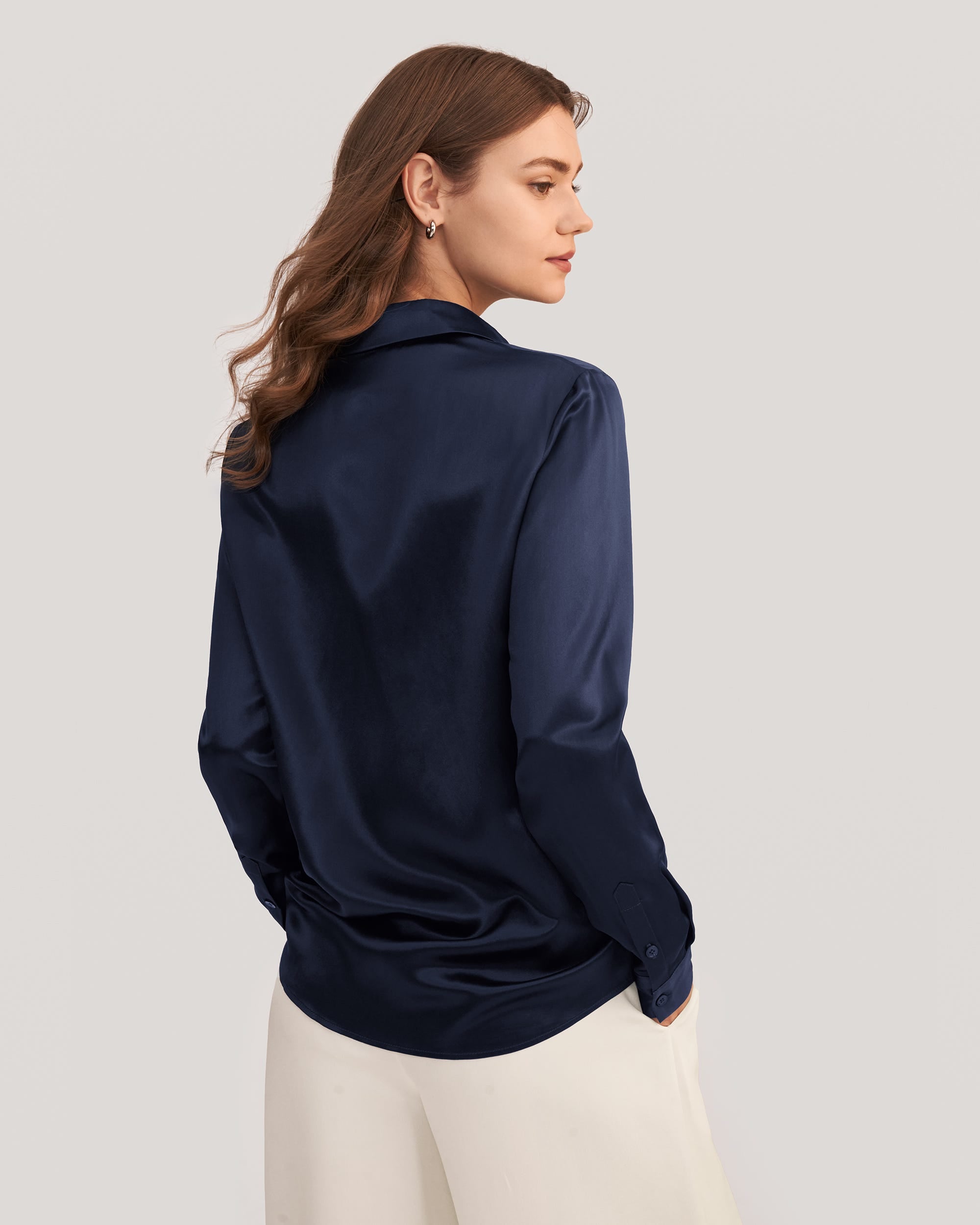 22 Momme Charmeuse Silk, Glossy, Smooth, SoftРубашка с длинными рукавамиGlossy FinishRegular FitВечная классика из тончайшего шелка Charmeuse, который придает этой простой в уходе рубашке красивый мягкий блеск. Независимо от того, сочетается ли она с костюмом или джинсами, аккуратный воротник и скрытые перламутровые пуговицы создают ухоженный вид.
