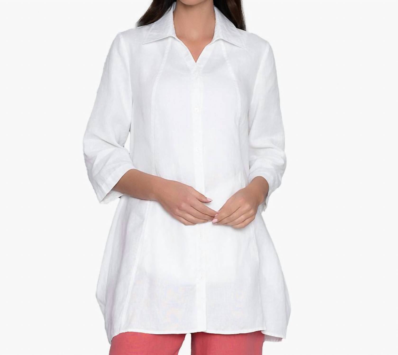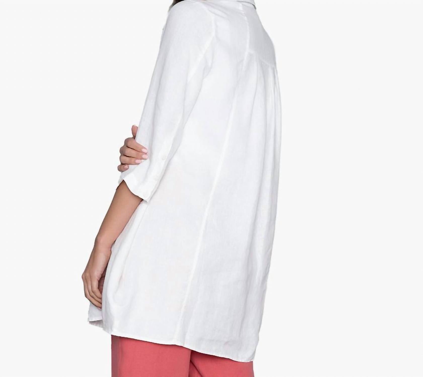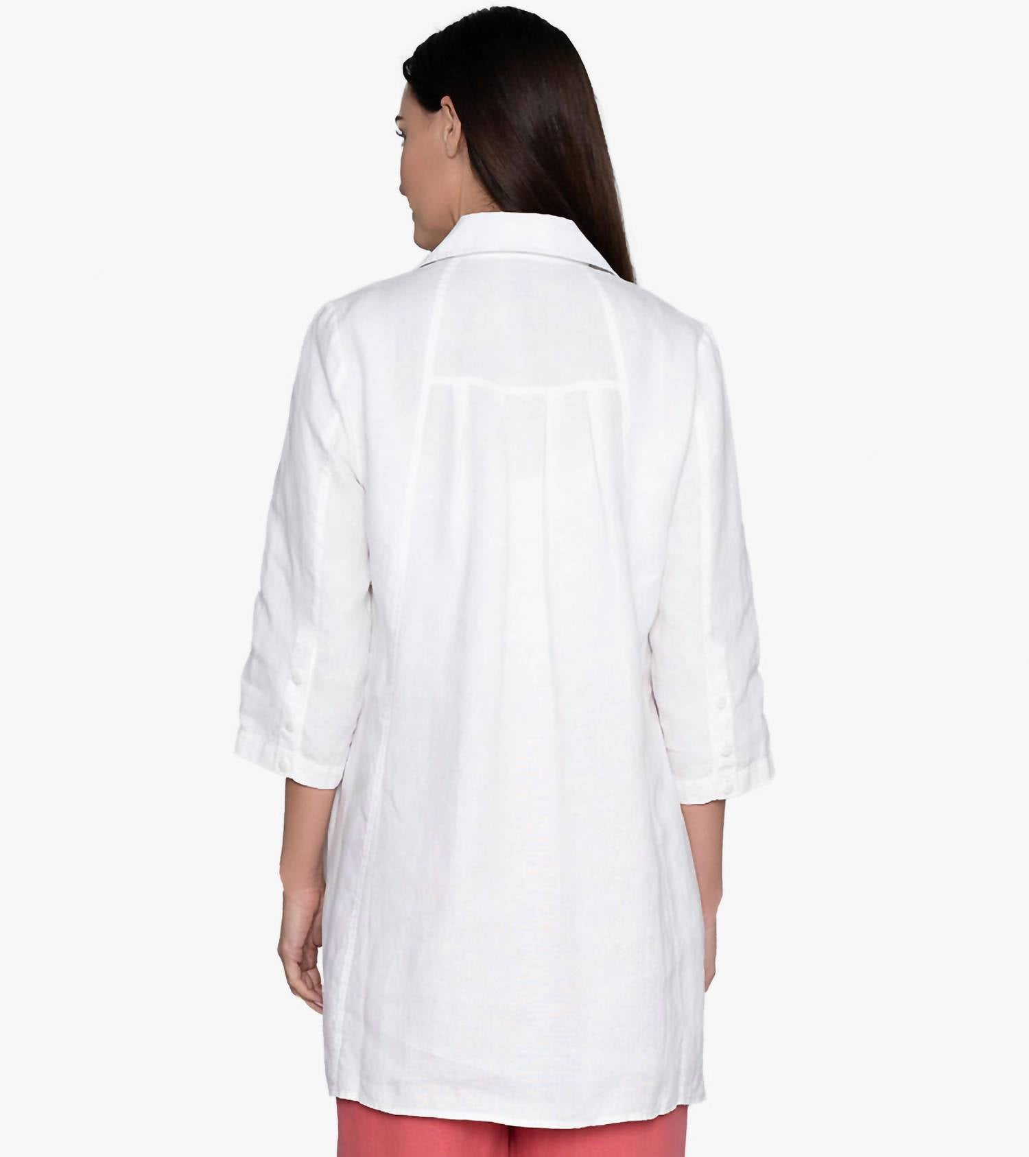 Архитектурный крой и вытачки сзади. Карманы в швах. Изготовлено из роскошного льна. Длина по спинке составляет приблизительно 33 дюйма для размера S. Модель выше ростом 5 футов 11 дюймов носит размер S, но эта туника одинаково хорошо смотрится и на невысоких женщинах.