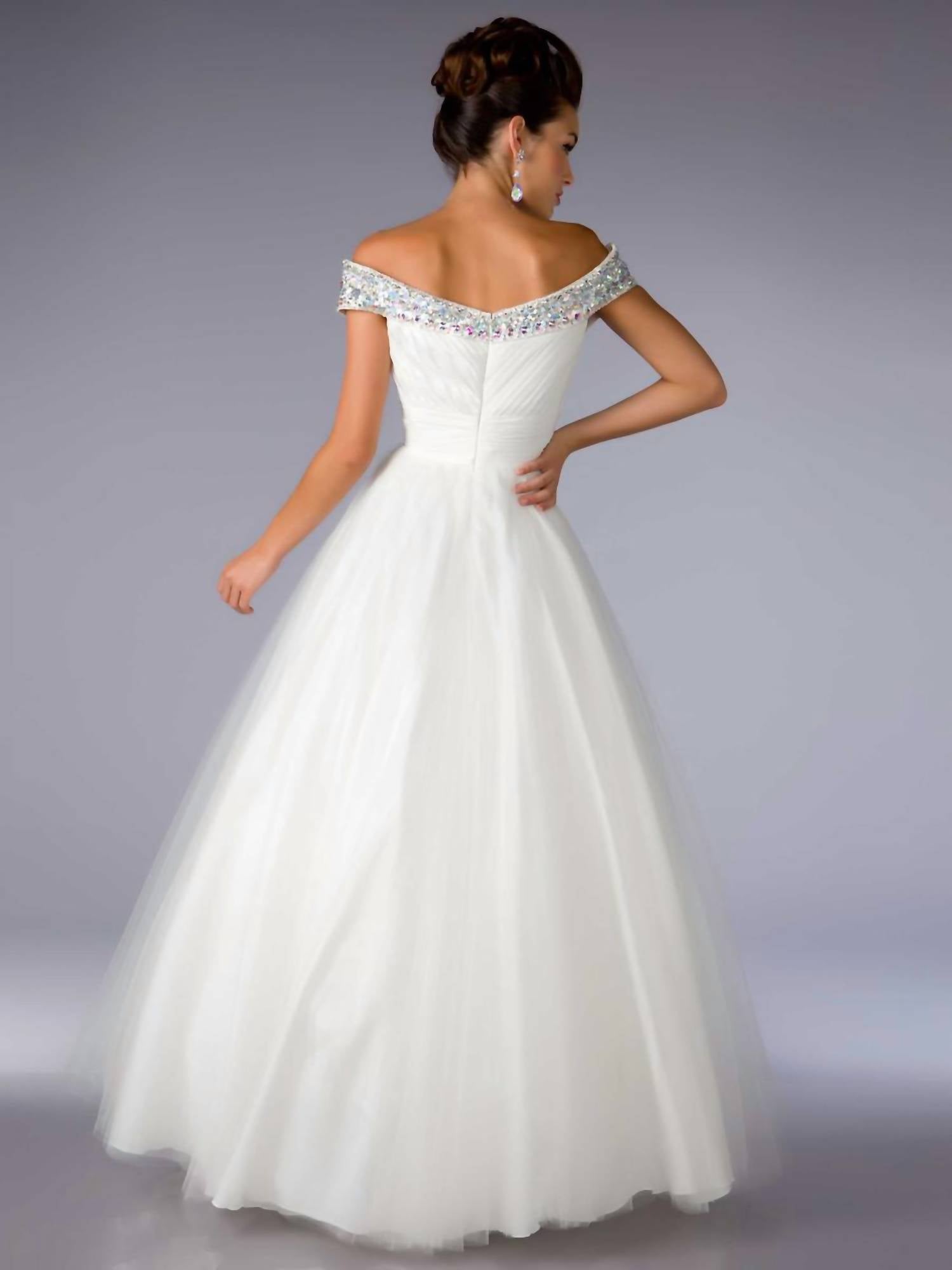 Вскружите голову в самом милом и самом лестном вечернем платье. Запечатлейте вечную элегантность с платьем Crystal Off the Shoulder от Mac Duggal, идеальным выбором для вашего следующего выпускного вечера. Это очаровательное платье имеет вырез в форме сердца, инкрустированный кристаллами, с бретелями, открывающими плечи, и пышную юбку из тюля, демонстрирующую изысканный силуэт А-силуэта. Это изделие, доступное в потрясающем белом цвете, застегивается на молнию. Уход за этим платьем только путем химчистки.