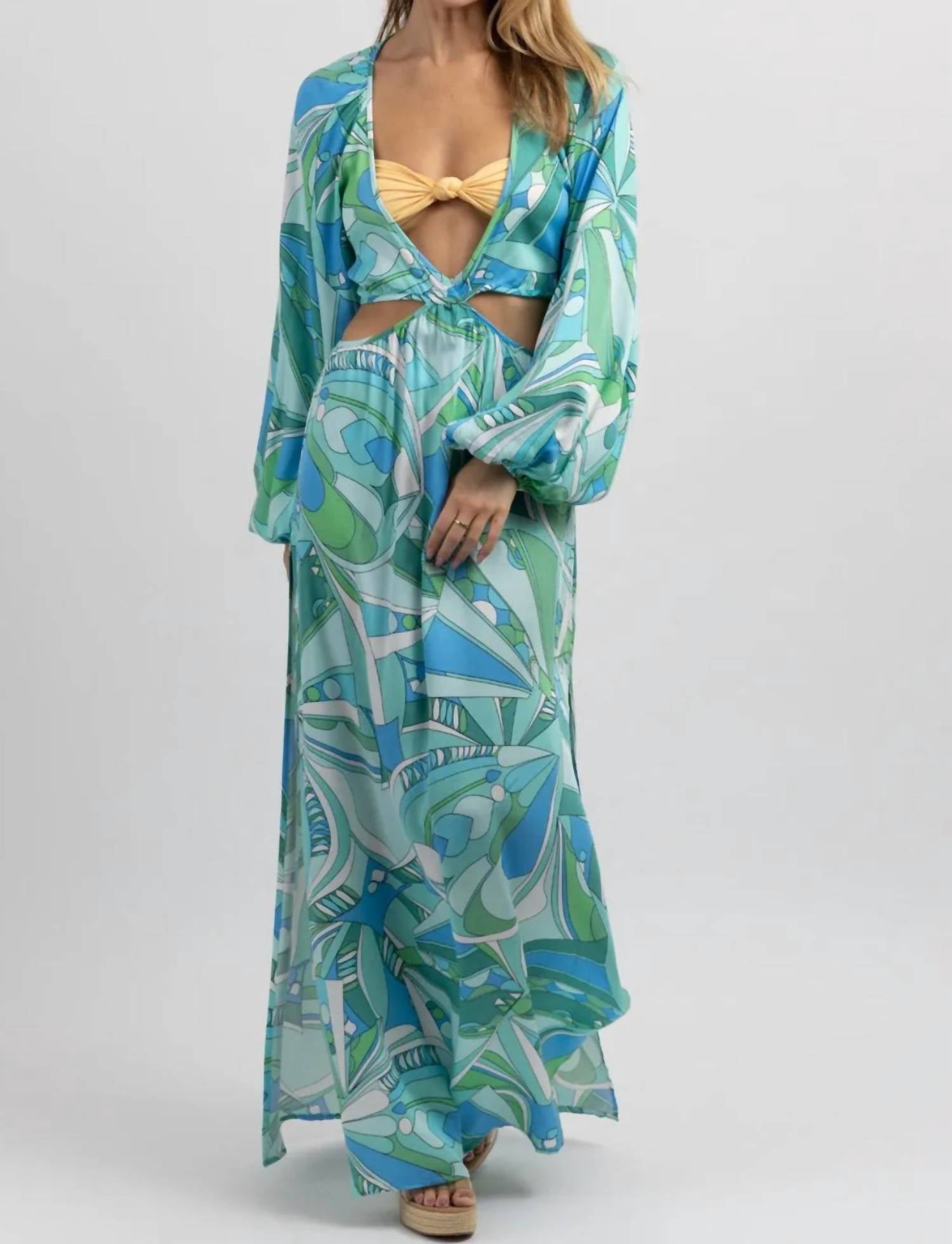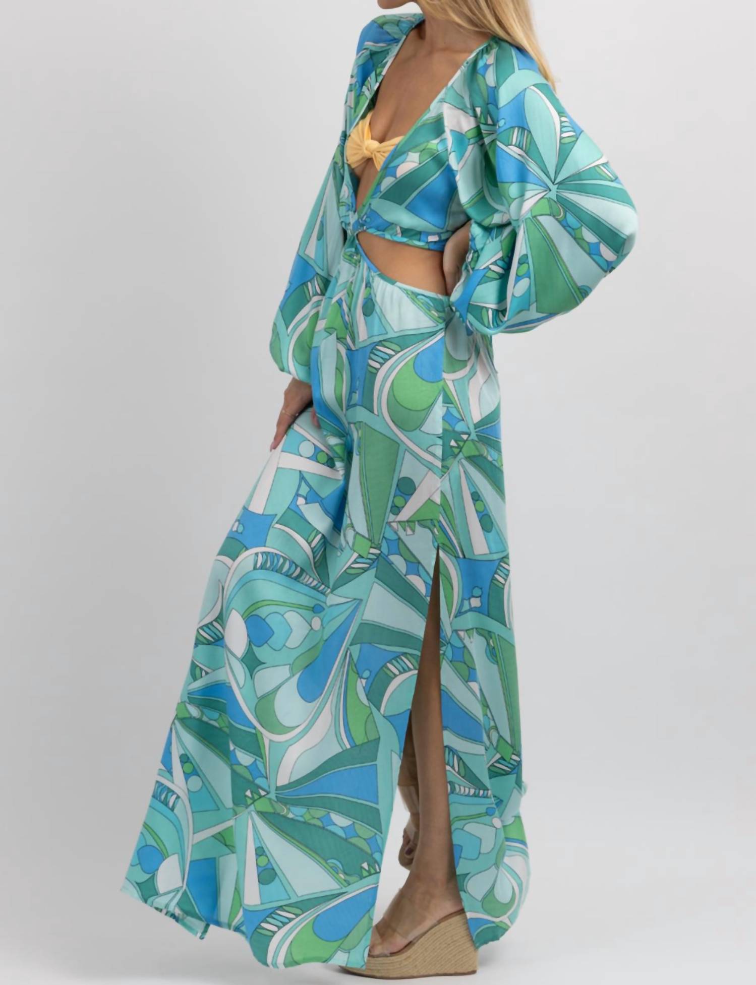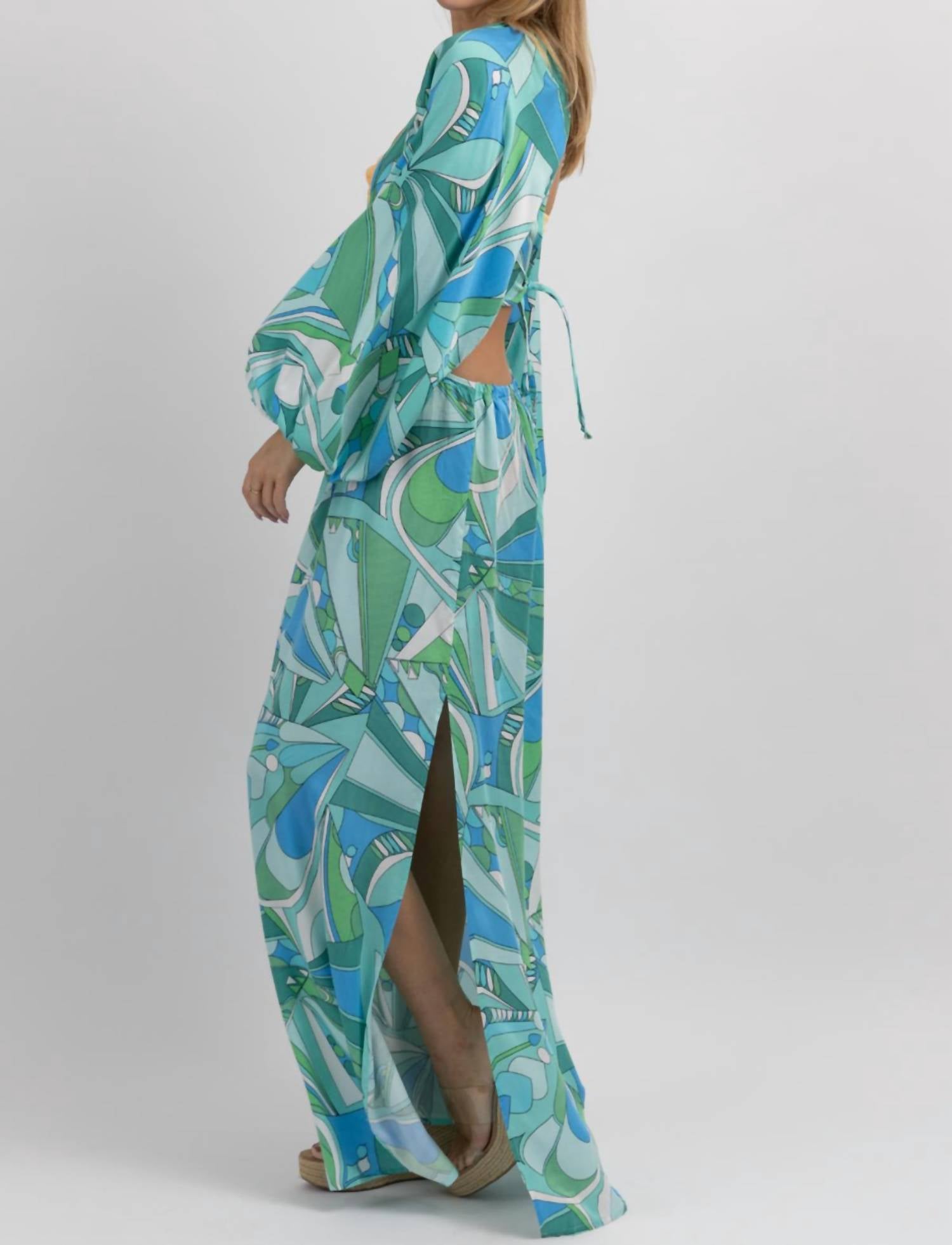 Длина макси, вырезы, боковые разрезы, длинные рукава-фонарики, легкое, без подкладки. 100% вискоза. На модели размер small, рост 5'8, размер платья 2.