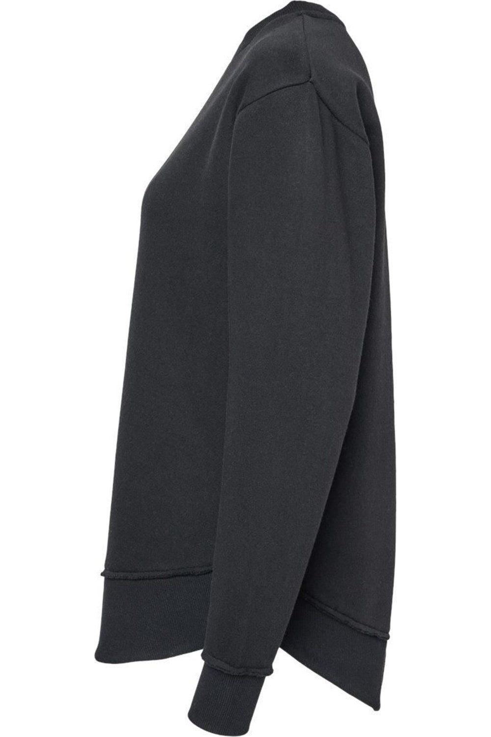 7,4 унции/ярд, 60/40 чесаный хлопок рингспун/полиэстер. Флис с тремя концами. Свободный свободный крой. Ребристый воротник. Спущенное плечо. Ребристый необработанный край подгиба и манжеты. Спущенный хвост. Заплатка на застежке сзади. Этикетка EasyTear.