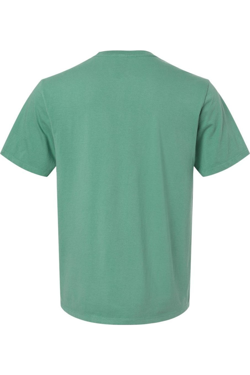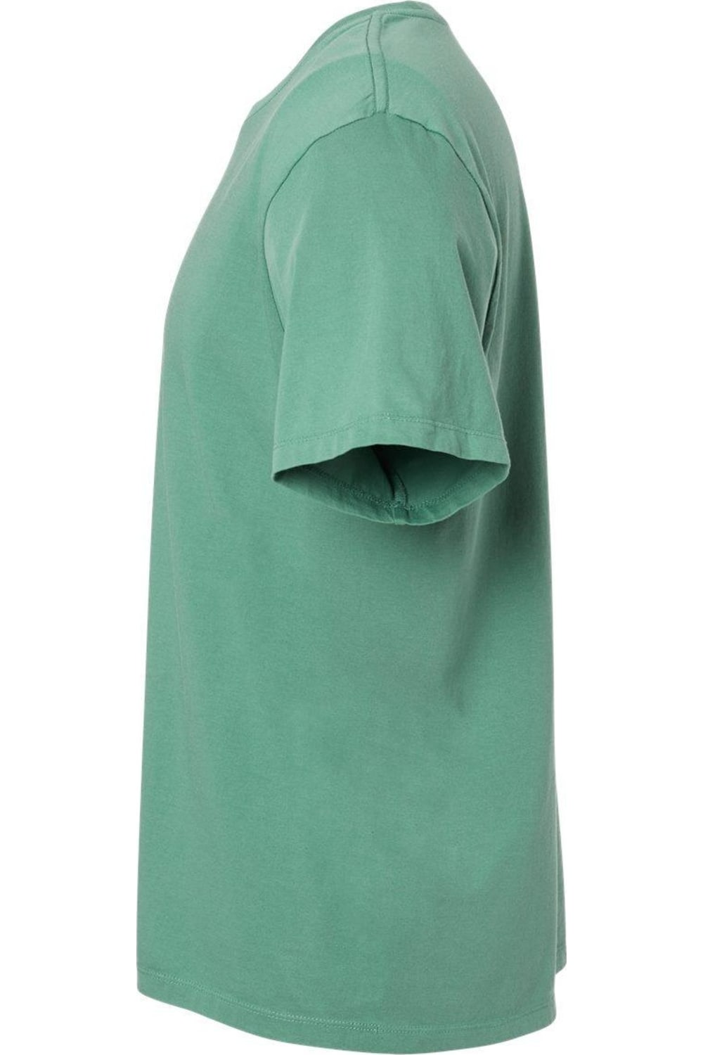 5 унций/ярд, 100% хлопчатобумажная пряжа GOTS кольцевого способа прядения. Классический крой. Красители Dystar с низким воздействием. Изделие выстирано и подвергнуто биополировке для максимальной мягкости без ворса и печати. ​​Двойной воротник. Прошитая спереди от плеча к плечу лента на 1/2 дюйма. Чистый готовый подол. Отрывная этикетка.