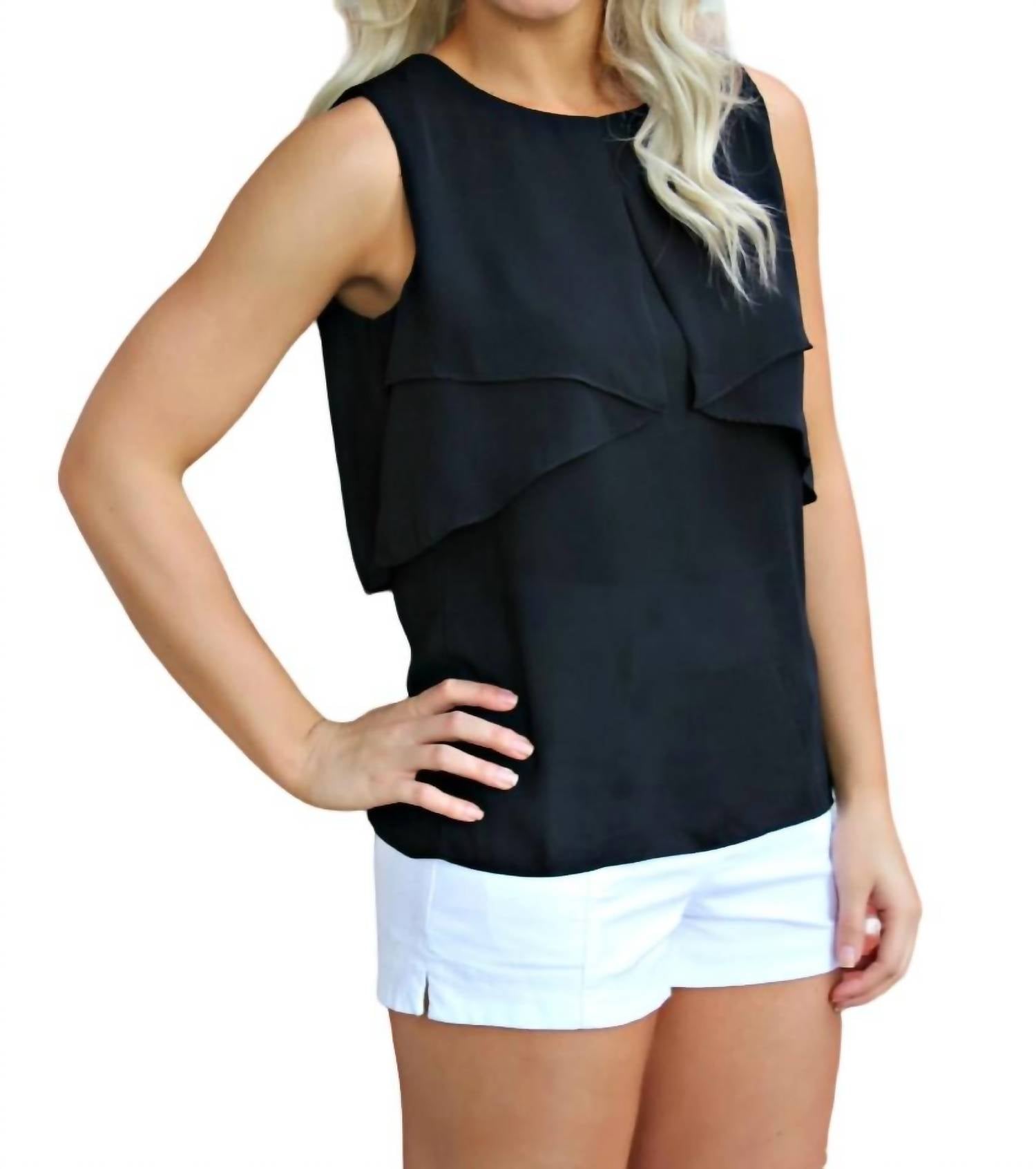 Блузка без рукавов с плоскими оборками черного цвета THML