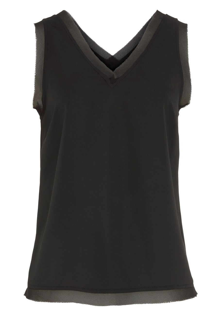 LASCANA Женский сетчатый топ с V-образным вырезом, черный