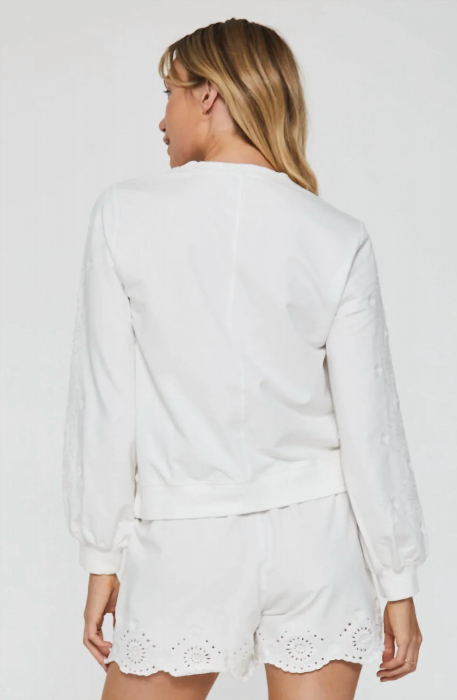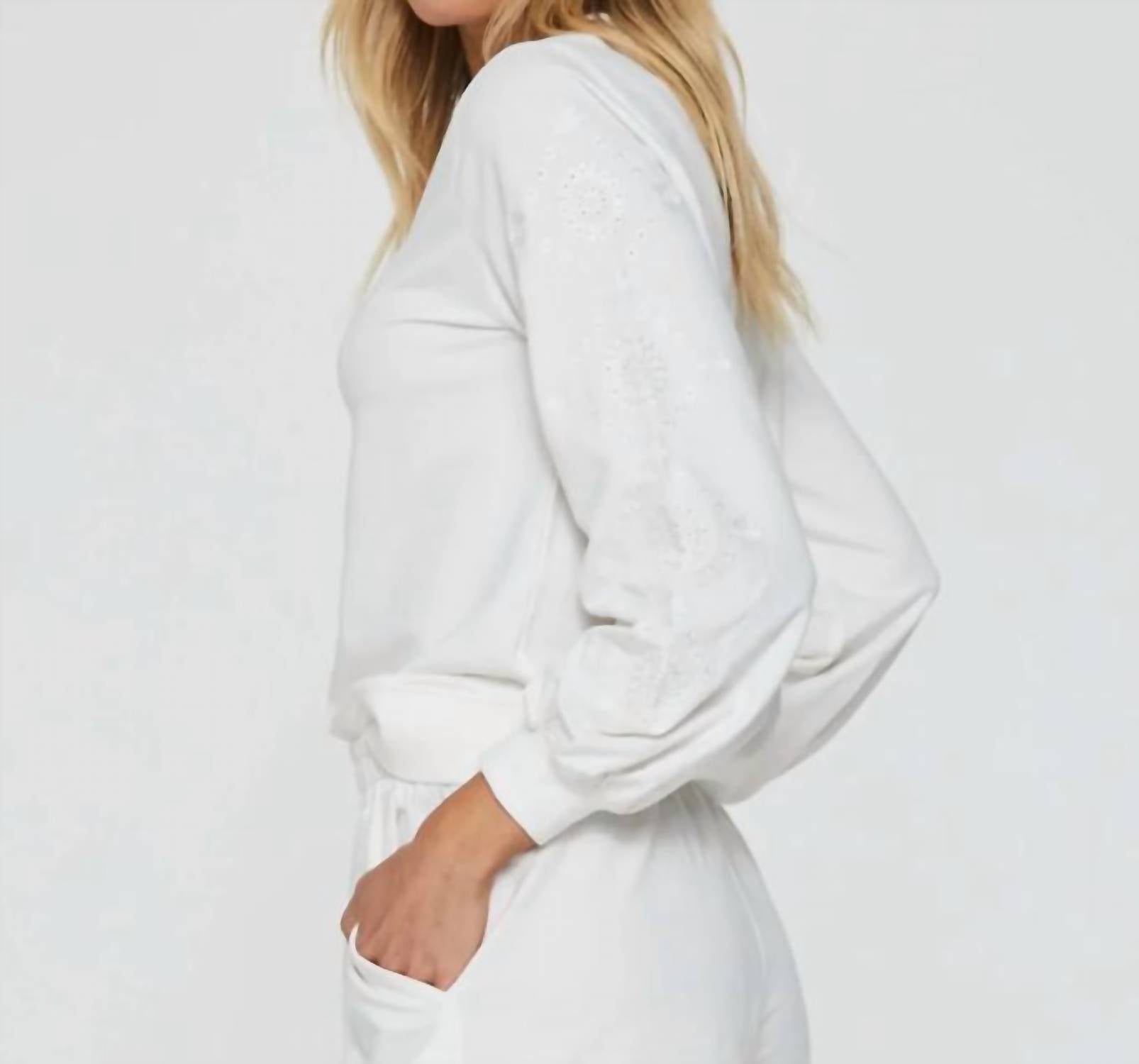 95% ХЛОПОК 5% СПАНДЕКС. Верх с вышивкой, длинный рукав-колокольчик, круглый вырез горловины с ребристыми манжетами и поясом, центральный шов сзади. Однотонный трикотаж стандартной посадки. Длина изделия от HPS - 22 1/2", Длина рукава - 23", Бюст - 38" (размер Small). Машинная стирка в холодной воде, сушка в стиральной машине при низкой температуре. Импортный