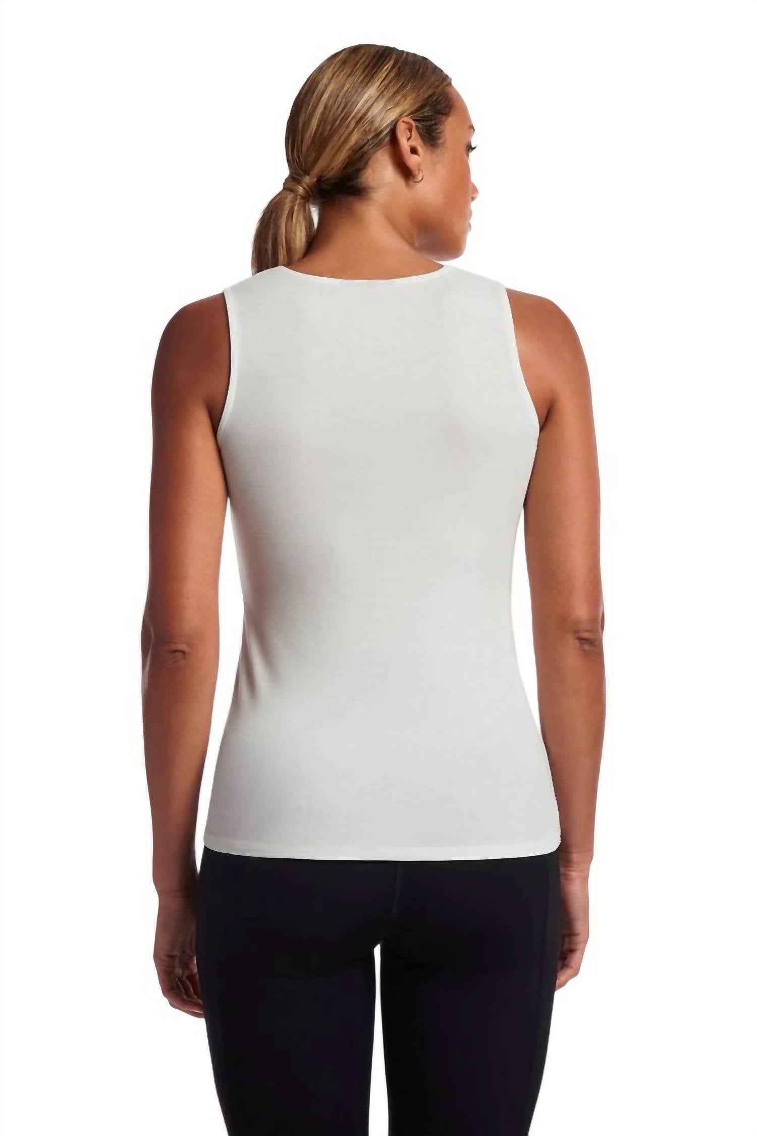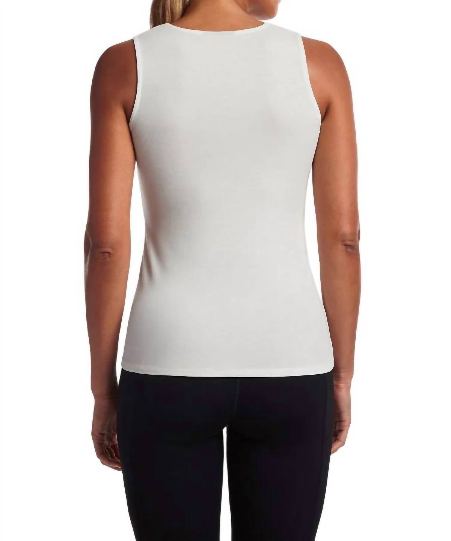 Рост модели 5 футов 10 дюймов, размер S. 90% вискоза, 10% нейлон. Машинная стирка в холодной воде, не отбеливать, сушить на горизонтальной поверхности, гладить при низкой температуре при необходимости или химчистка. Импортная. Стиль пуловер. V-образный вырез. Топ без рукавов. Прямой подол.