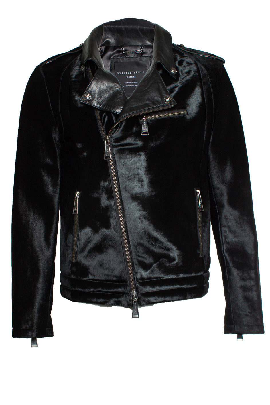 Куртка на молнии из кожи пони PHILIPP PLEIN, черный