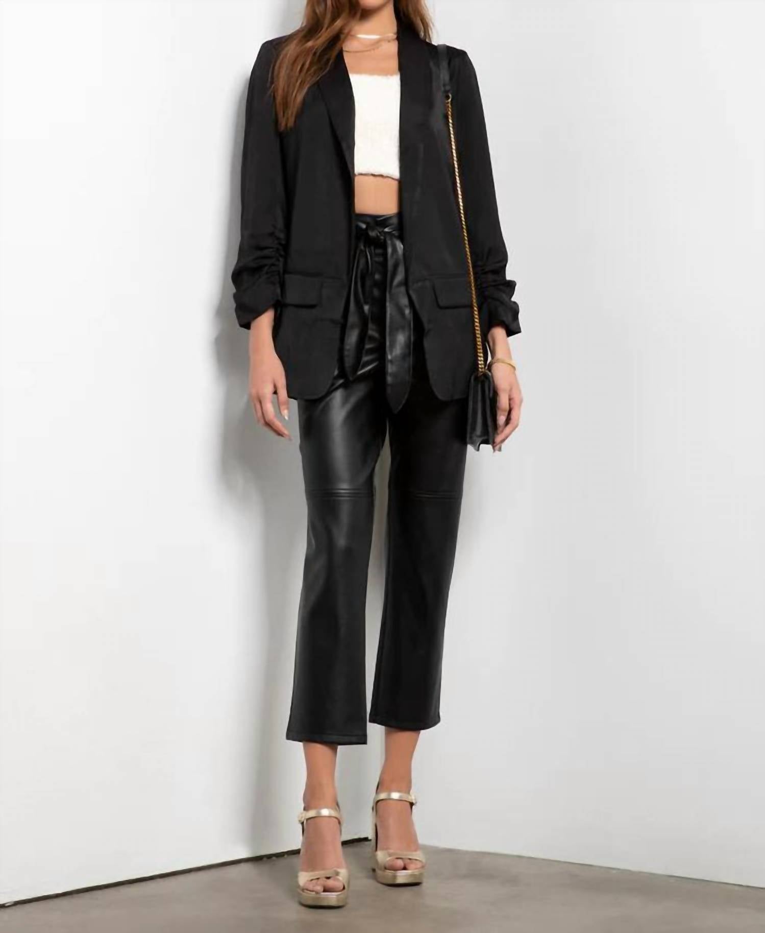 Брюки Kimiko из искусственной кожи. Высокая талия с завязками. Укороченный прямой крой. Искусственная кожа. Верх - 100% полиуретан. Подкладка - 100% полиэстер. Машинная стирка в холодной воде, вывернув наизнанку. Или химчистка. Не гладить.