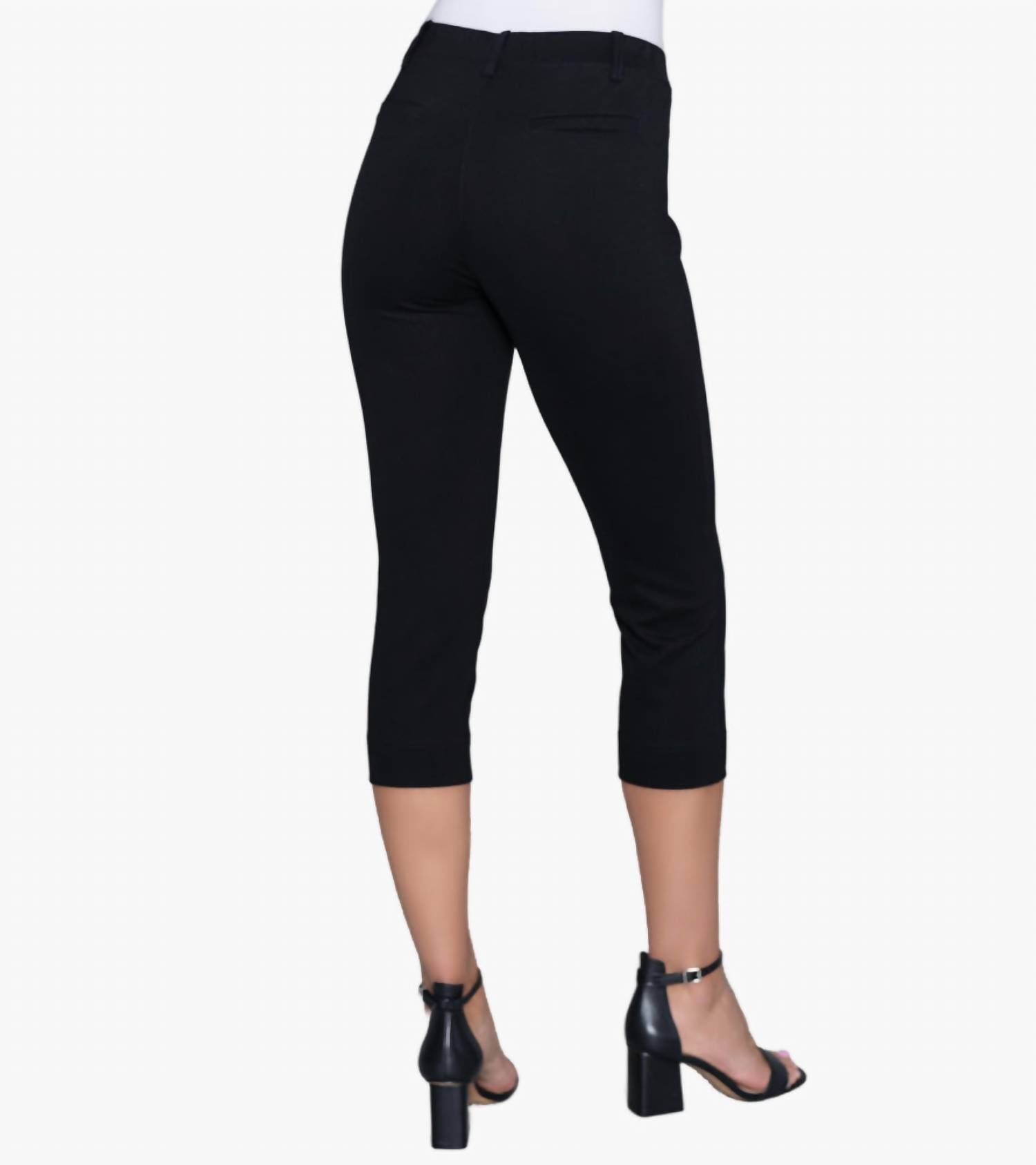 Удобные брюки-капри с деталями классических брюк выполнены из немнущейся ткани Tencel Ponte. Брюки можно надевать. Длина внутреннего шва составляет приблизительно 21,5 дюйма для размера S. Рост модели 5 футов 11 дюймов, размер S. 57% Tencel/ 37% нейлон/ 6% спандекс. Импортные. Машинная стирка.