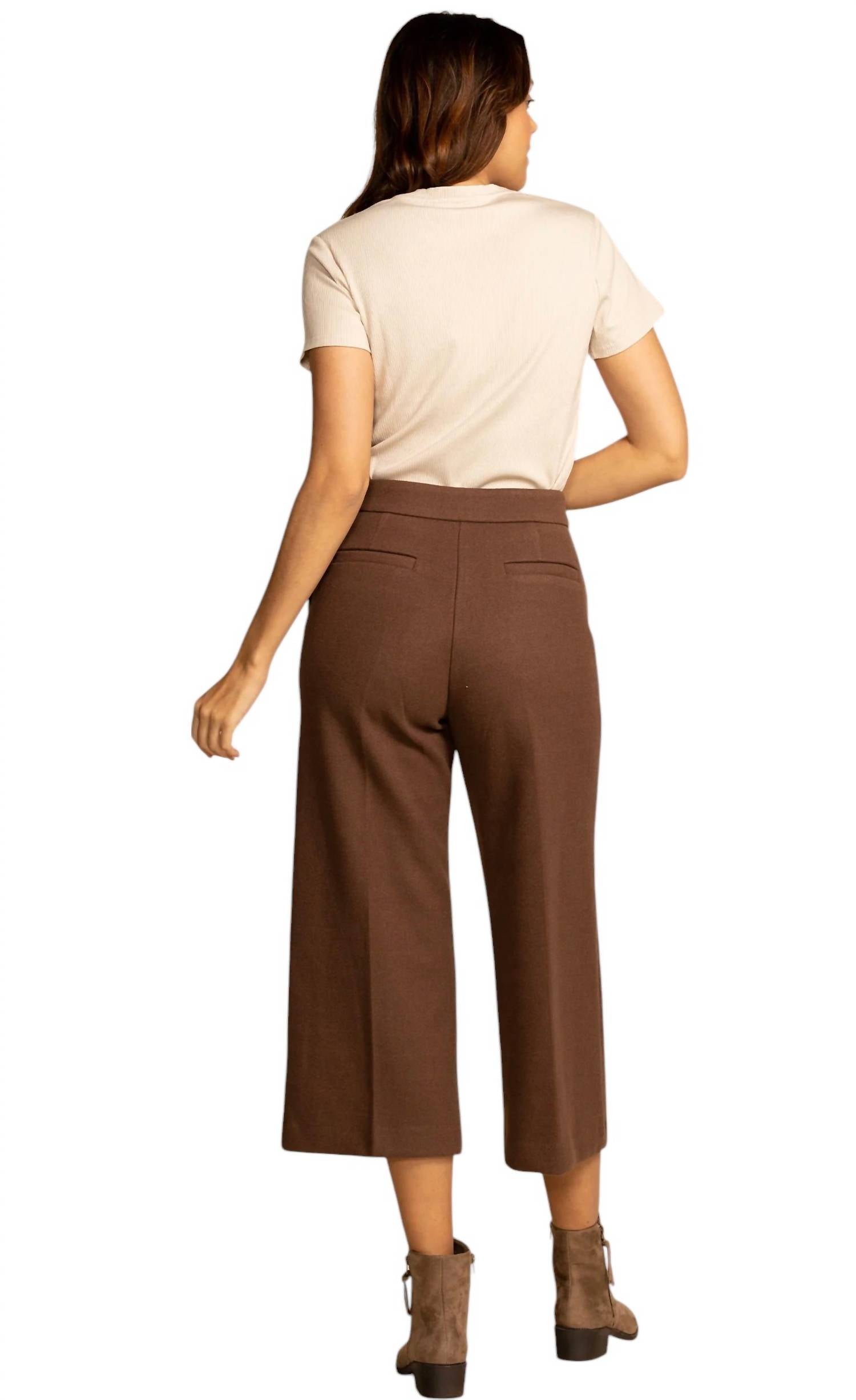 Эти стильные брюки изготовлены из смеси 70% полиэстера, 20% полиамида и 10% хлопка, что обеспечивает как комфорт, так и долговечность. Эти брюки длиной до щиколотки имеют свободный крой с прямыми штанинами, высокую талию и однотонный цвет. Застежка - надевается.