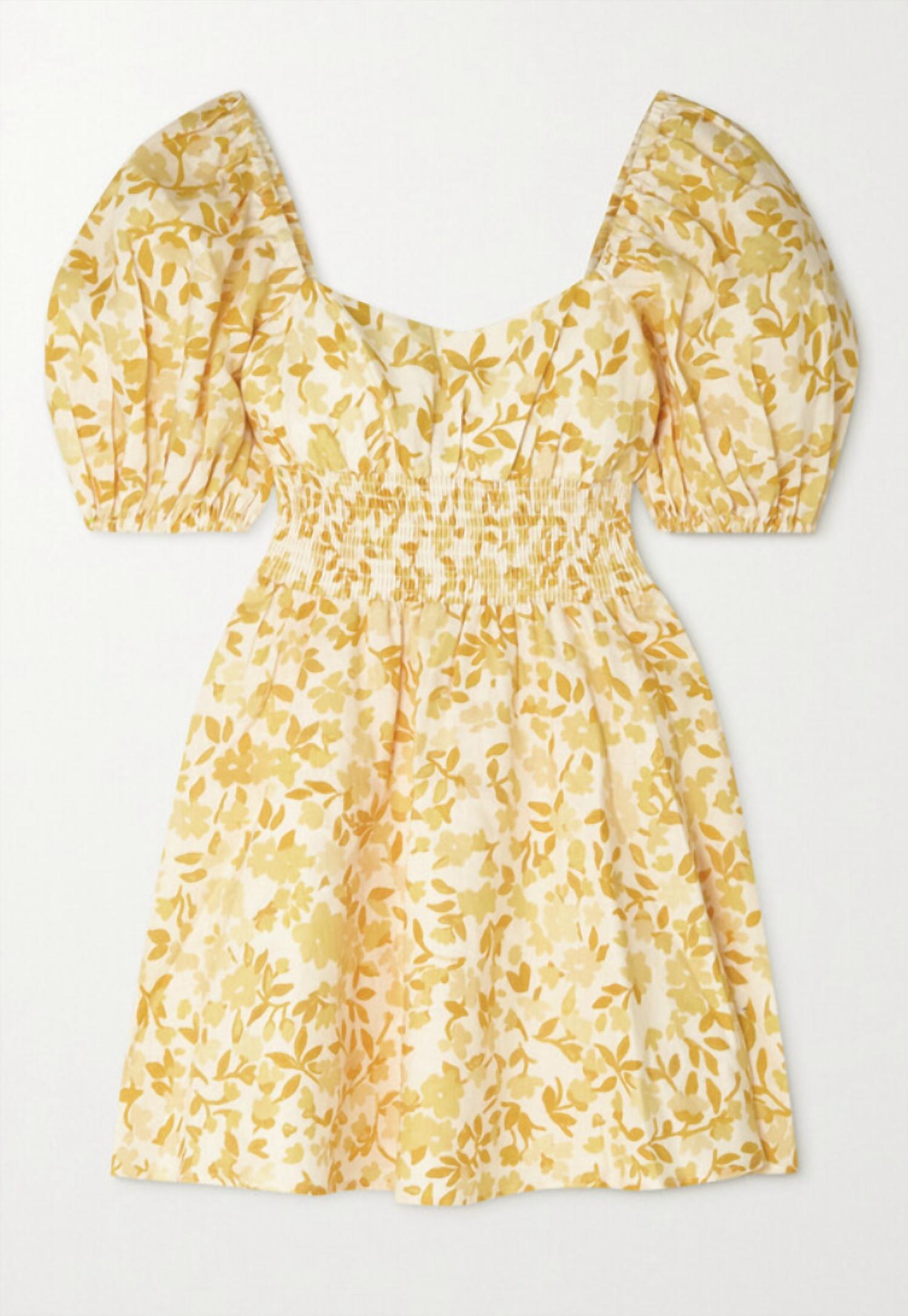 Платье-мини с нарциссами в сборку желтого цвета Multi Peony