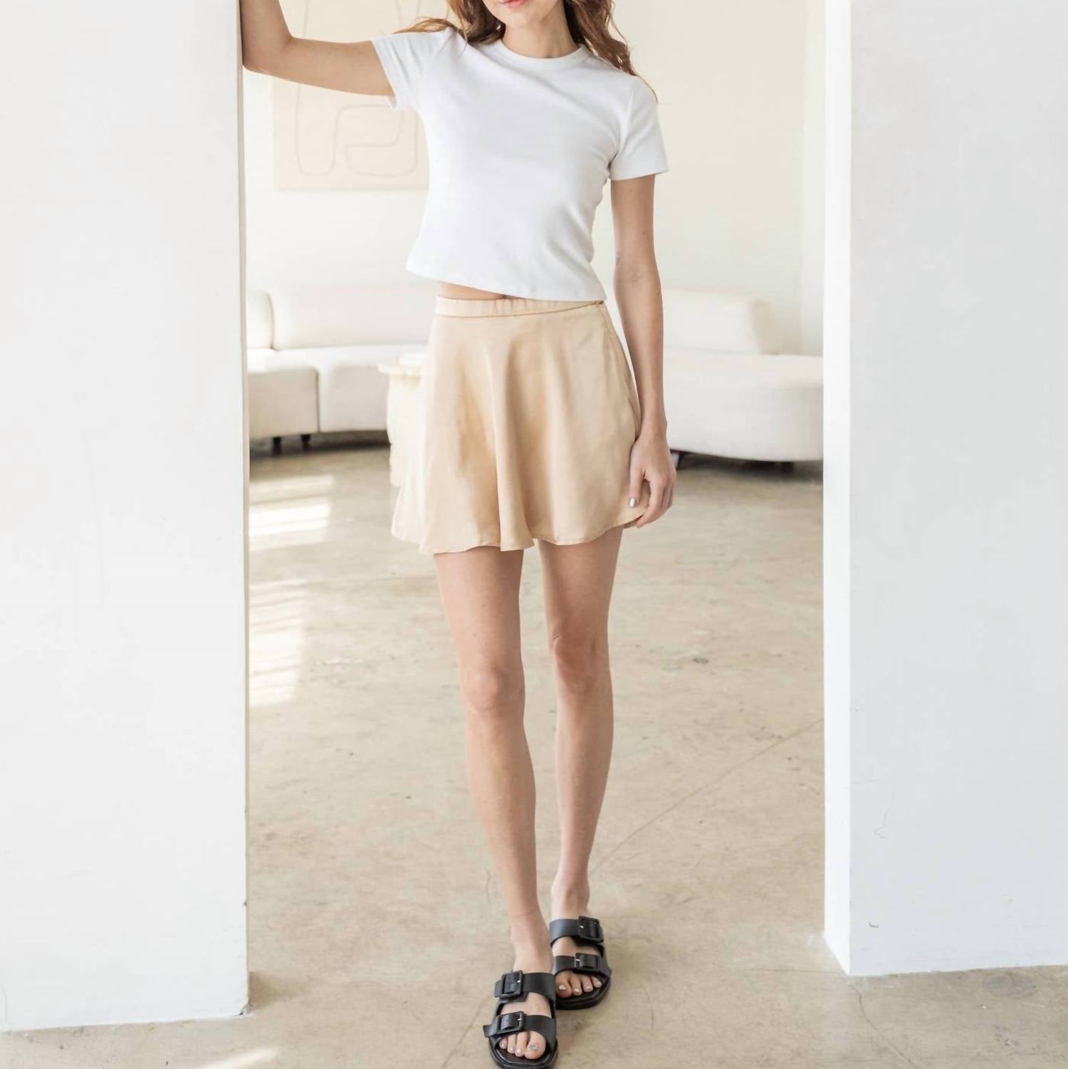 Заправьте любимую футболку для более непринужденного образа. Усовершенствуйте свой повседневный образ с юбкой Cindy Skirt от Things Between, которая отличается развевающимся атласным дизайном в шикарном оттенке шампанского. Эта мини-юбка из хлопковой смеси обеспечивает идеальный баланс комфорта и стиля. Тип застежки — удобная застежка-молния, специально разработанная для женщин. Идеально подходит для воплощения повседневной легкости с изысканностью.