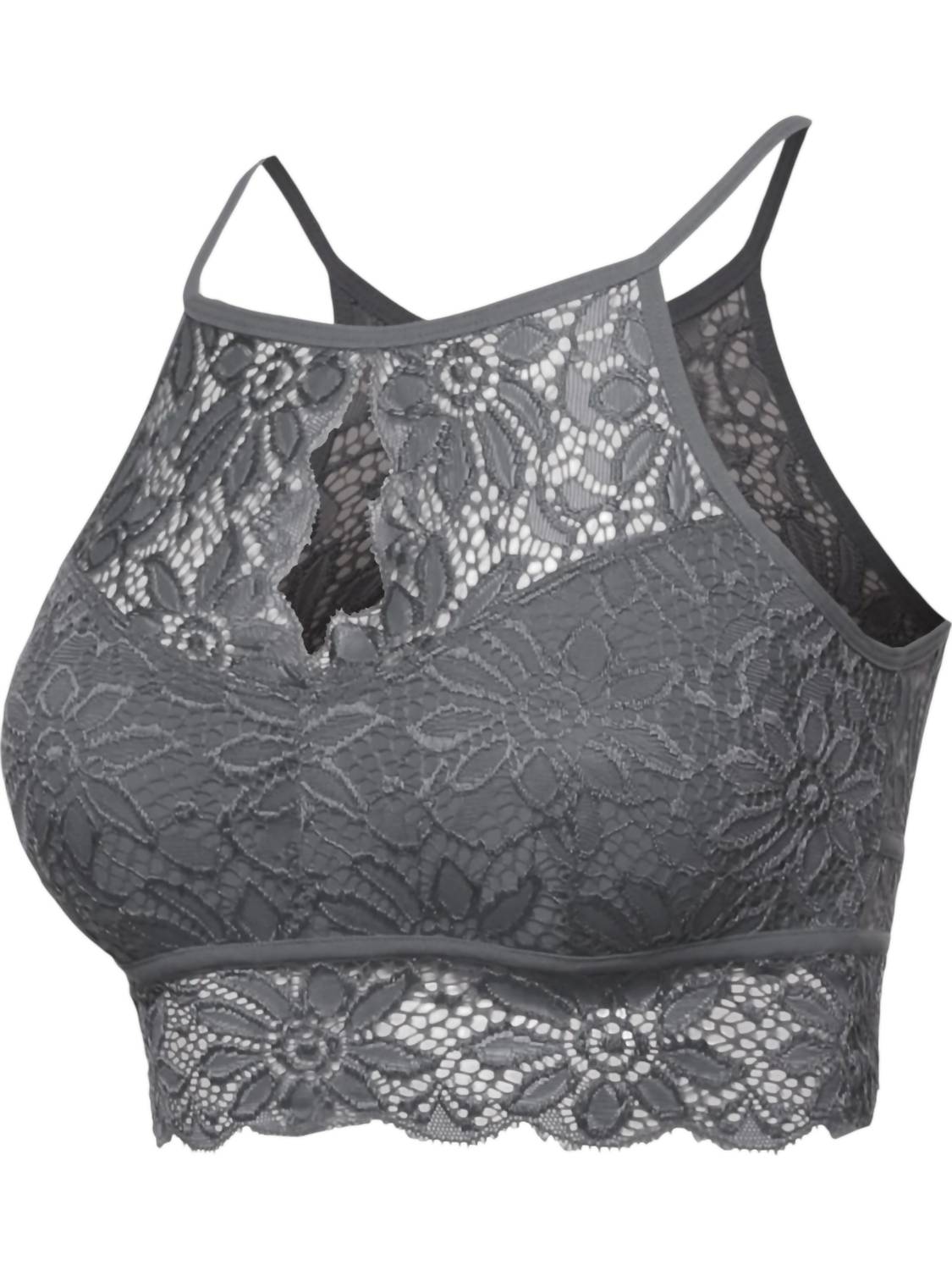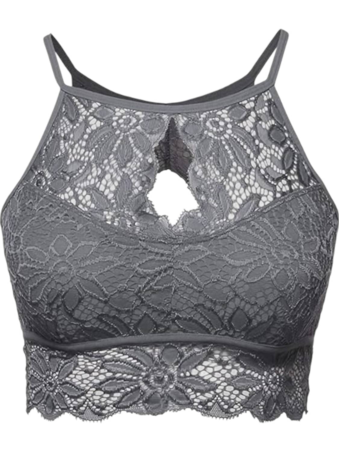 Высокий вырез с вырезом-замочной скважиной. Кружевной бюстгальтер без косточек с чашечками на подкладке для дополнительной защиты. Фасон «борцовка» с вырезом-замочной скважиной.