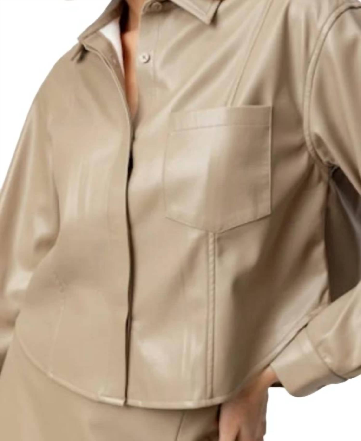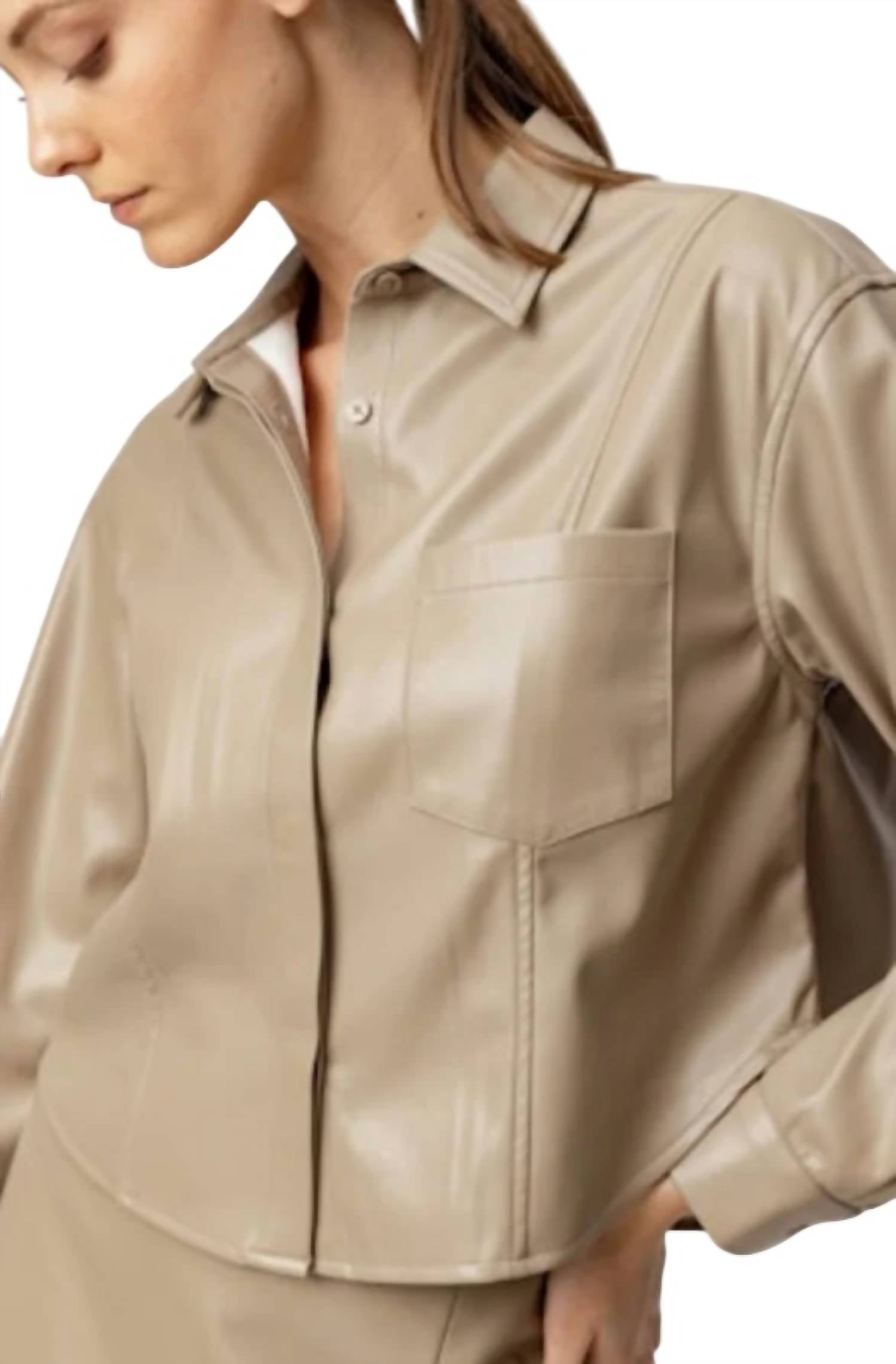 Рубашка из мягкой веганской кожи. 100% полиуретан. Машинная стирка в холодной воде. Мерки указаны для размера X-Small: обхват груди — 18 дюймов. Длина — 19 дюймов.
