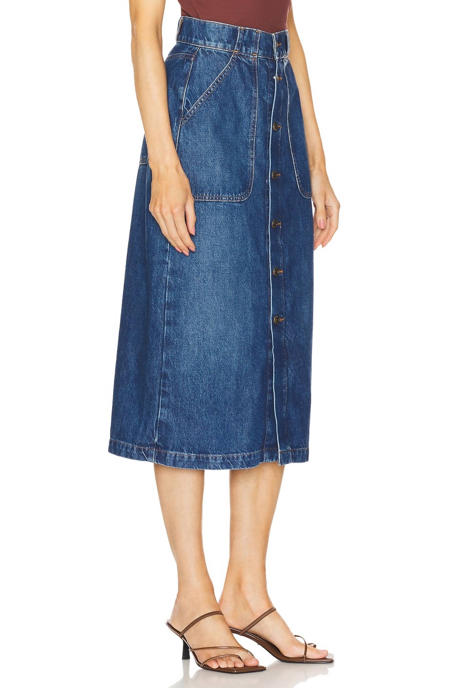 Эта юбка изготовлена из роскошной смеси 80% хлопка и 20% переработанного хлопка, изготовленного из жесткого денима в Тунисе, что обеспечивает устойчивый край. При длине около 32,67 дюйма (83 см) она демонстрирует современную застежку на пуговицы спереди и дизайн с 4 карманами для практичности и стиля. Юбка миди сияет ярким цветом, за ней легко ухаживать, она устойчива к машинной стирке.