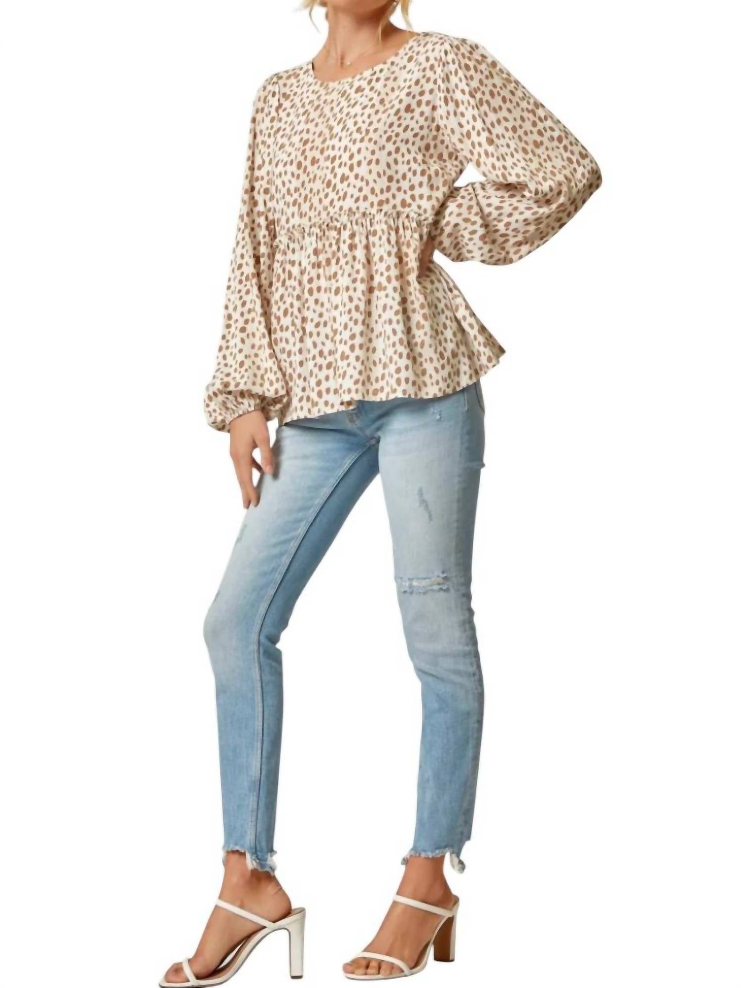 Эта блузка бэбидолл с принтом далматинцев, рукавами-фонариками и тканым, непрозрачным дизайном. Надевается через голову и сделана из 100% вискозы.