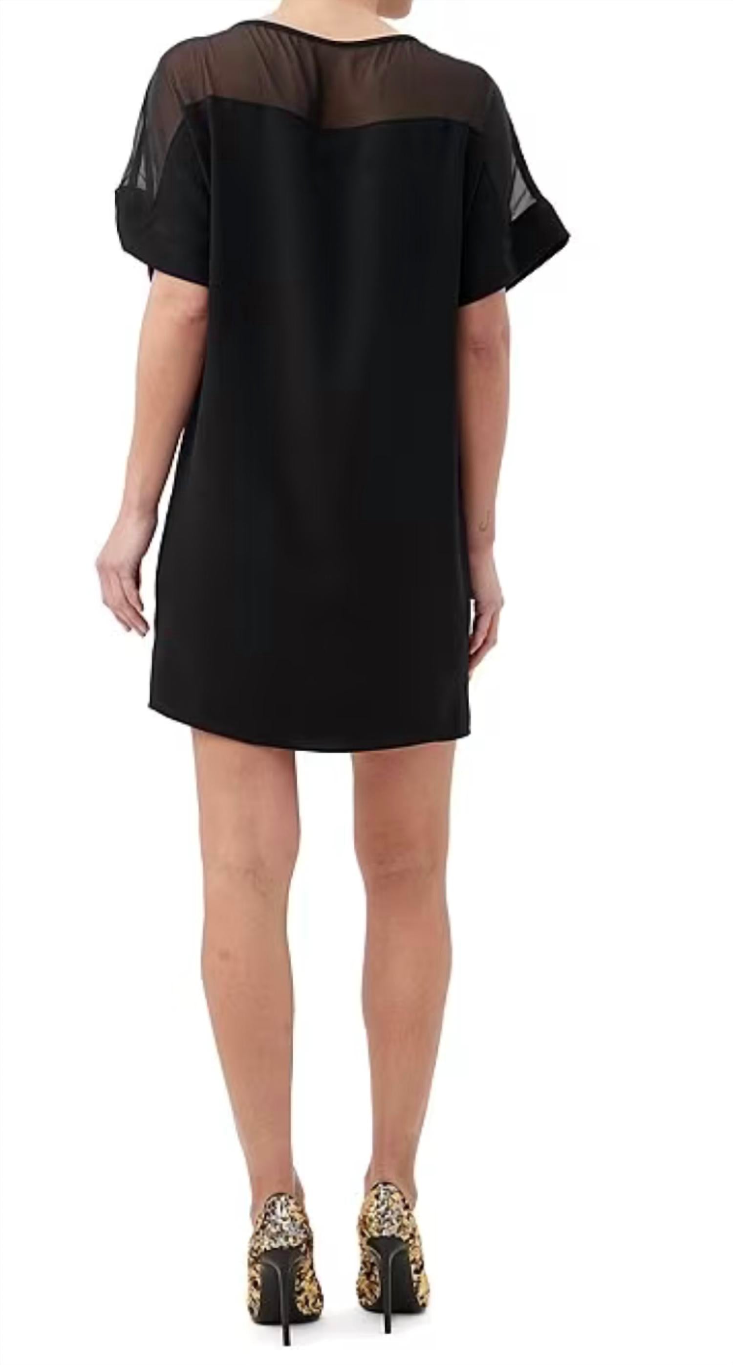 Этот элегантный и изысканный черный ансамбль выполнен из шелковистого крепа с атласной изнанкой. Этот изысканный предмет одежды предлагает вневременной стиль и идеально подходит для любого особого случая. Талия имеет вытачку, а передняя часть драпирована. 67% переработанного полиэстера, 33% полиэстера. Только сухая чистка.