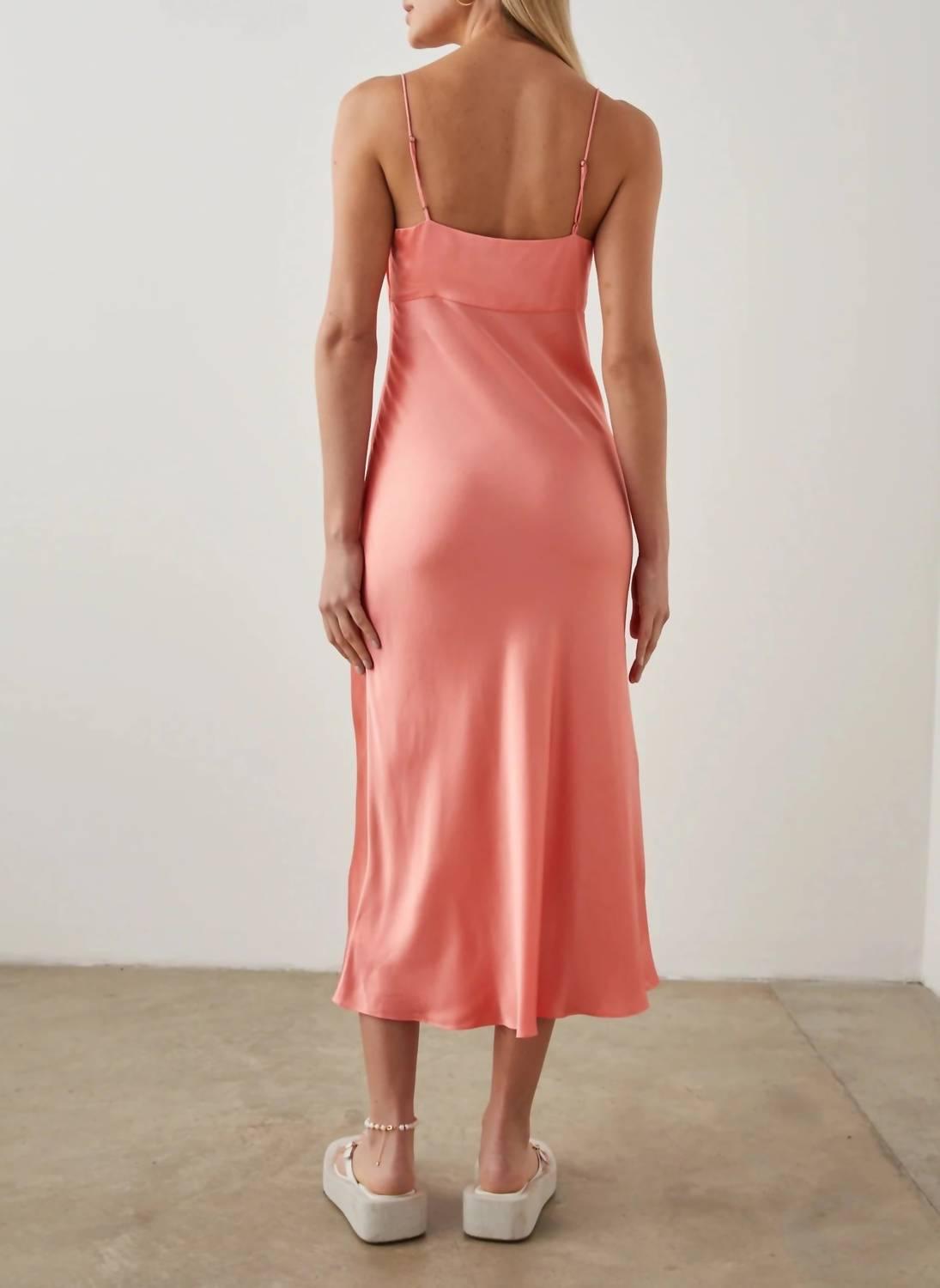 Платье Laramie — чувственный, готовый к вечеринке силуэт, разработанный с тонкими бретельками-спагетти и регулируемым шнурком на вырезе. Принимая элегантный минималистский подход, коралловый цвет делает тонкое заявление. Лучше всего то, что оно сделано из гладкого атласного крепа сзади, который выглядит так же роскошно, как и ощущается. 55% вискоза 45%