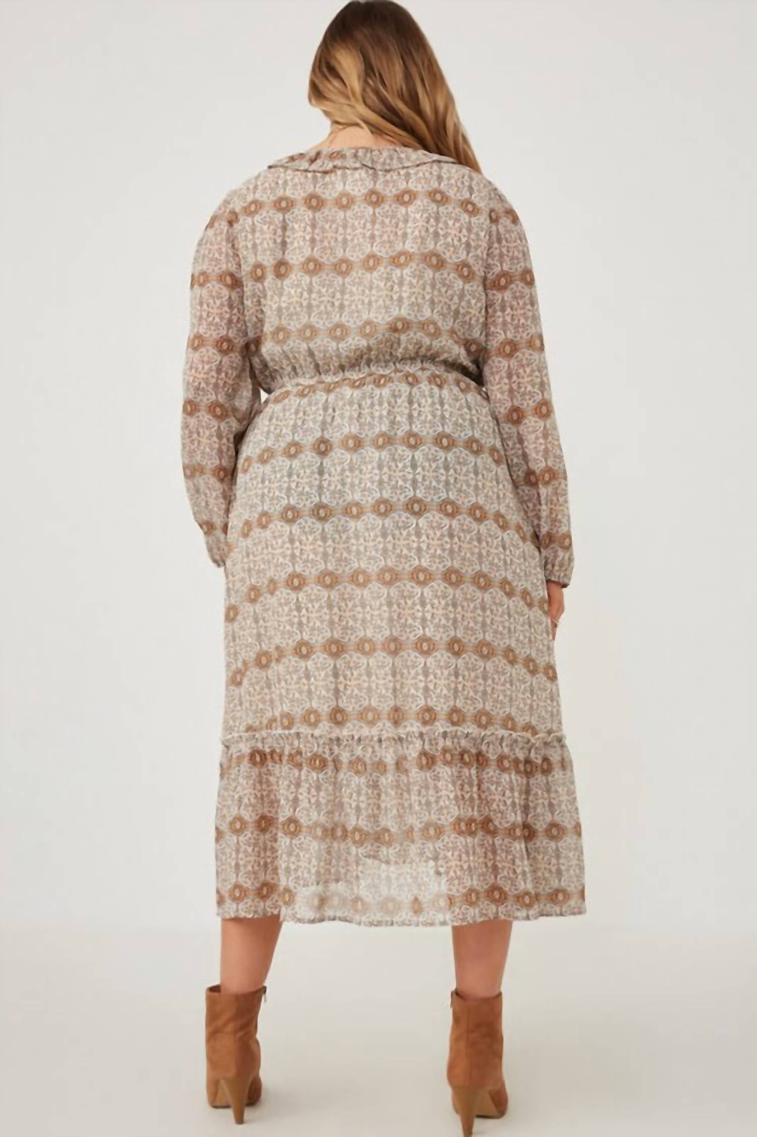 Платье-сюрплисс с длинными рукавами и оборками. Тканая ткань. Подкладка платья. Боковые карманы.