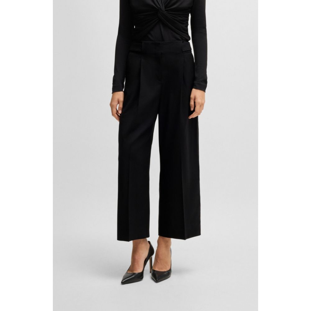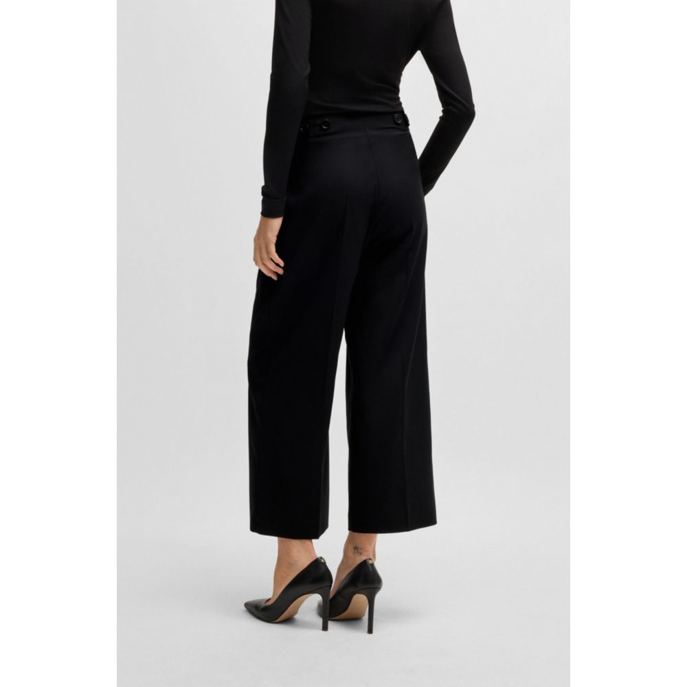 Брюки с высокой талией от BOSS Womenswear. Эта укороченная пара прямого кроя с широкими штанинами и застежками на пуговицы на талии.