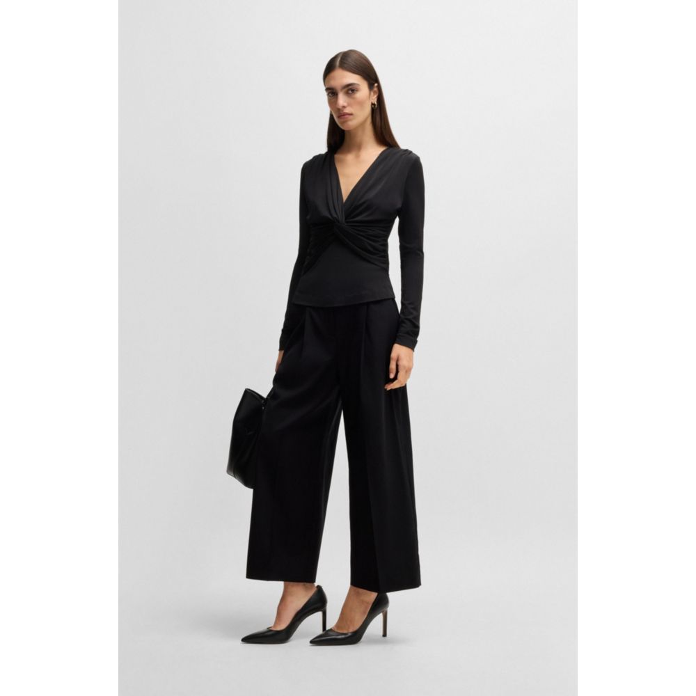Брюки прямого кроя с высокой талией из шерсти BOSS, черный