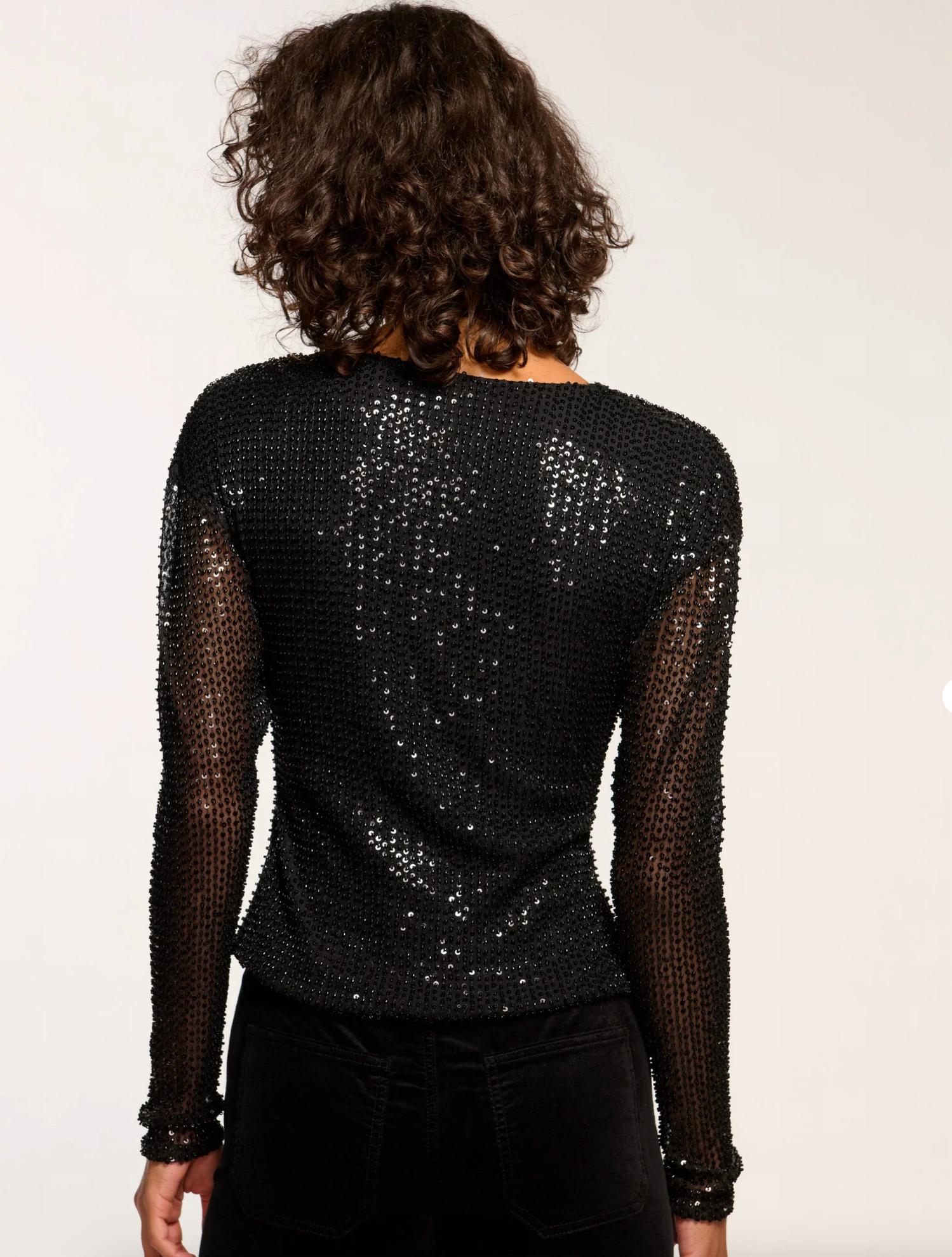 Изысканный топ с элегантными длинными рукавами. Изготовлен из сетки с пайетками и бисером по всей поверхности. Состоит из 95% полиэстера, 5% спандекса. Надевается на себя. С капюшоном. Химчистка или ручная стирка. Длинная блузка обещает создать привлекательный и роскошный образ.