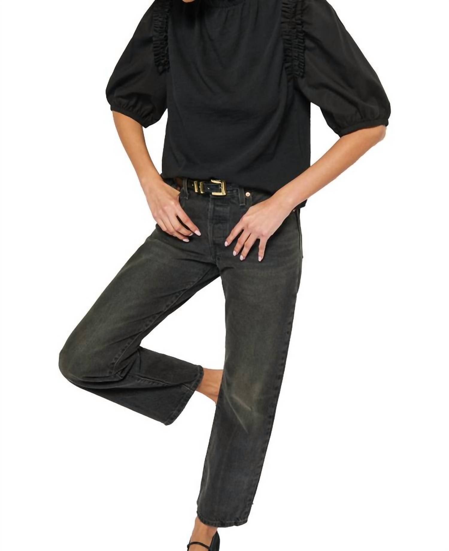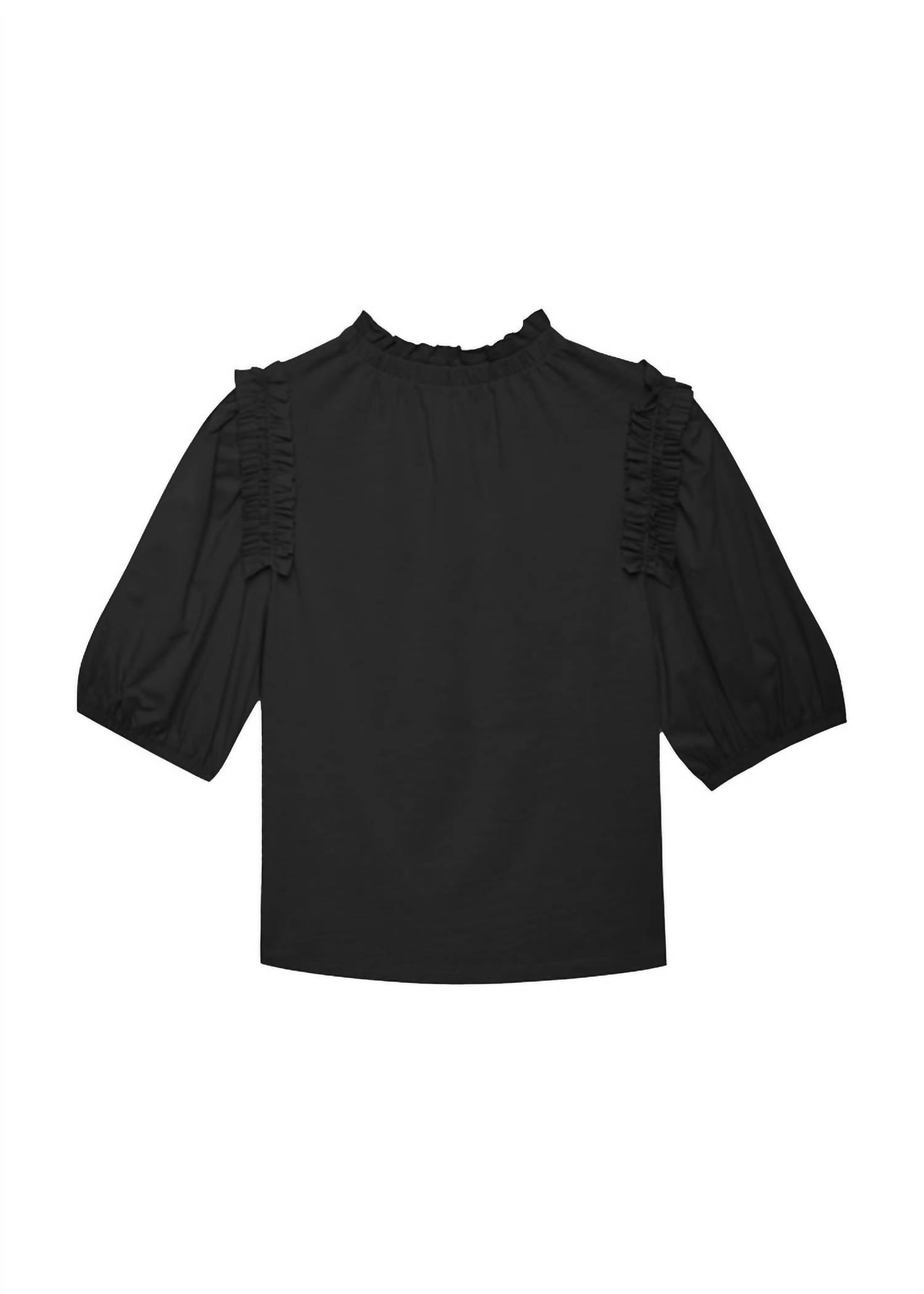 Короткий рукав с оборкой на горловине, контрастные плечи из хлопкового поплина и застегивающийся на пуговицы вырез-капелька сзади. 100% японский трикотажный хлопок. Рост модели 5 футов 9 дюймов, на ней размер S. Машинная стирка в холодной воде, бережная.