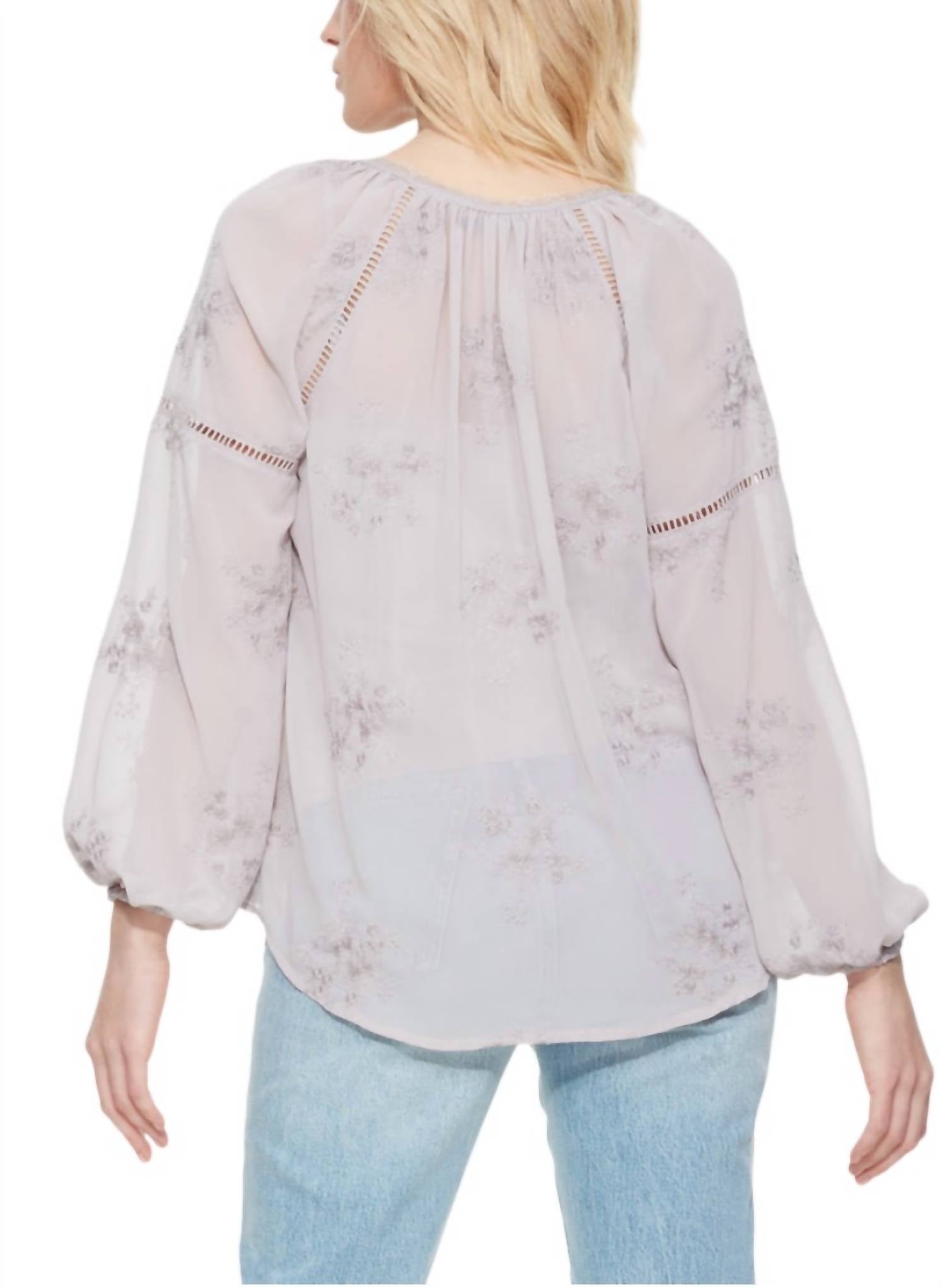 Мягкий и милый, этот винтажный топ демонстрирует замысловатый узор вязания крючком с V-образным вырезом. Отделанный рукавами-бишопами и вышивкой люверсами, он добавляет нотку элегантности любому наряду. Изготовлен из 100% полиэстера. Ручная стирка в холодной воде.
