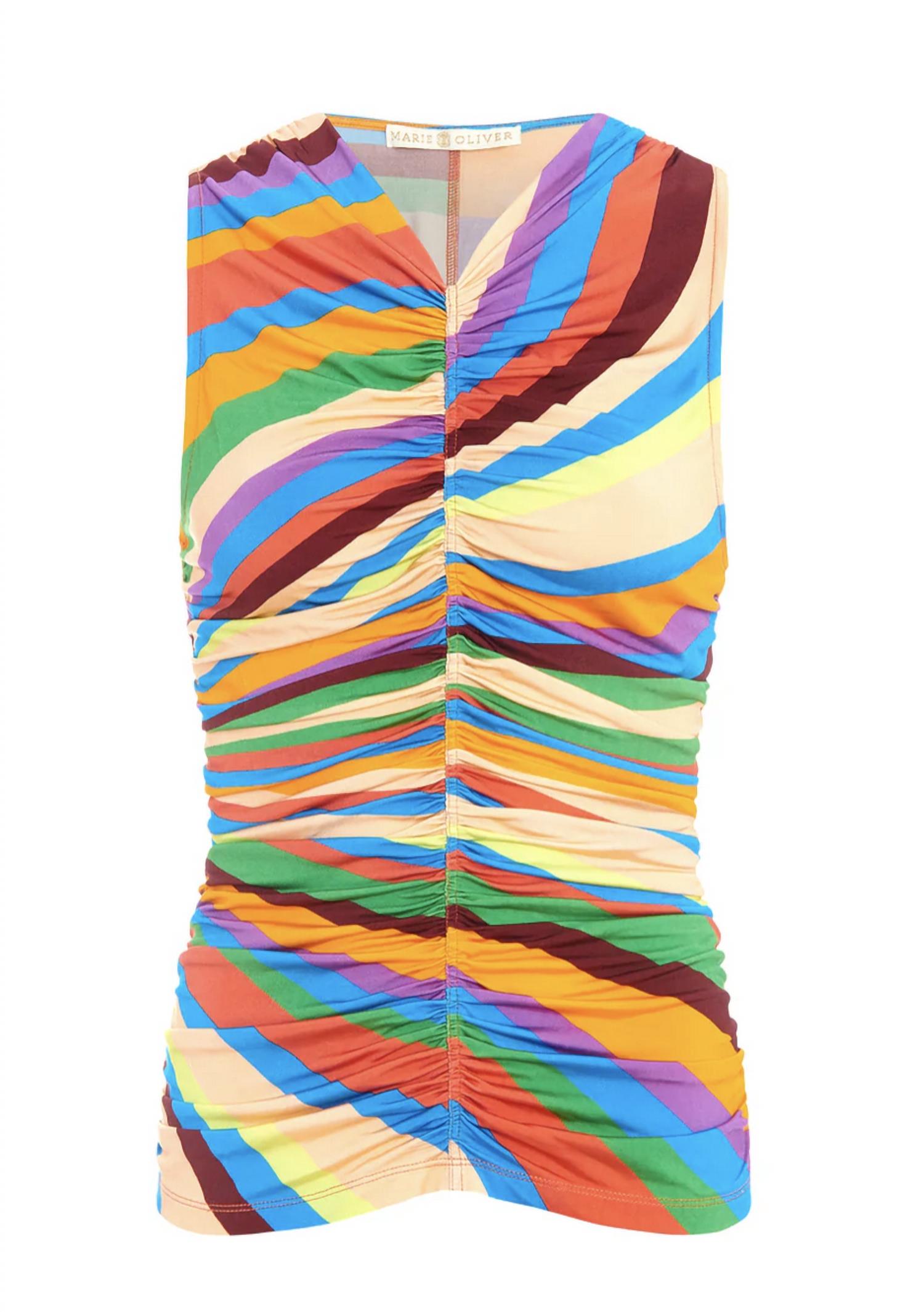 Топ Marie Oliver Meliah отличается высоким V-образным вырезом, облегающим кроем и сборкой по центральному шву. Он изготовлен из 95% вискозы и 5% эластана, без подкладки и соответствует размеру.