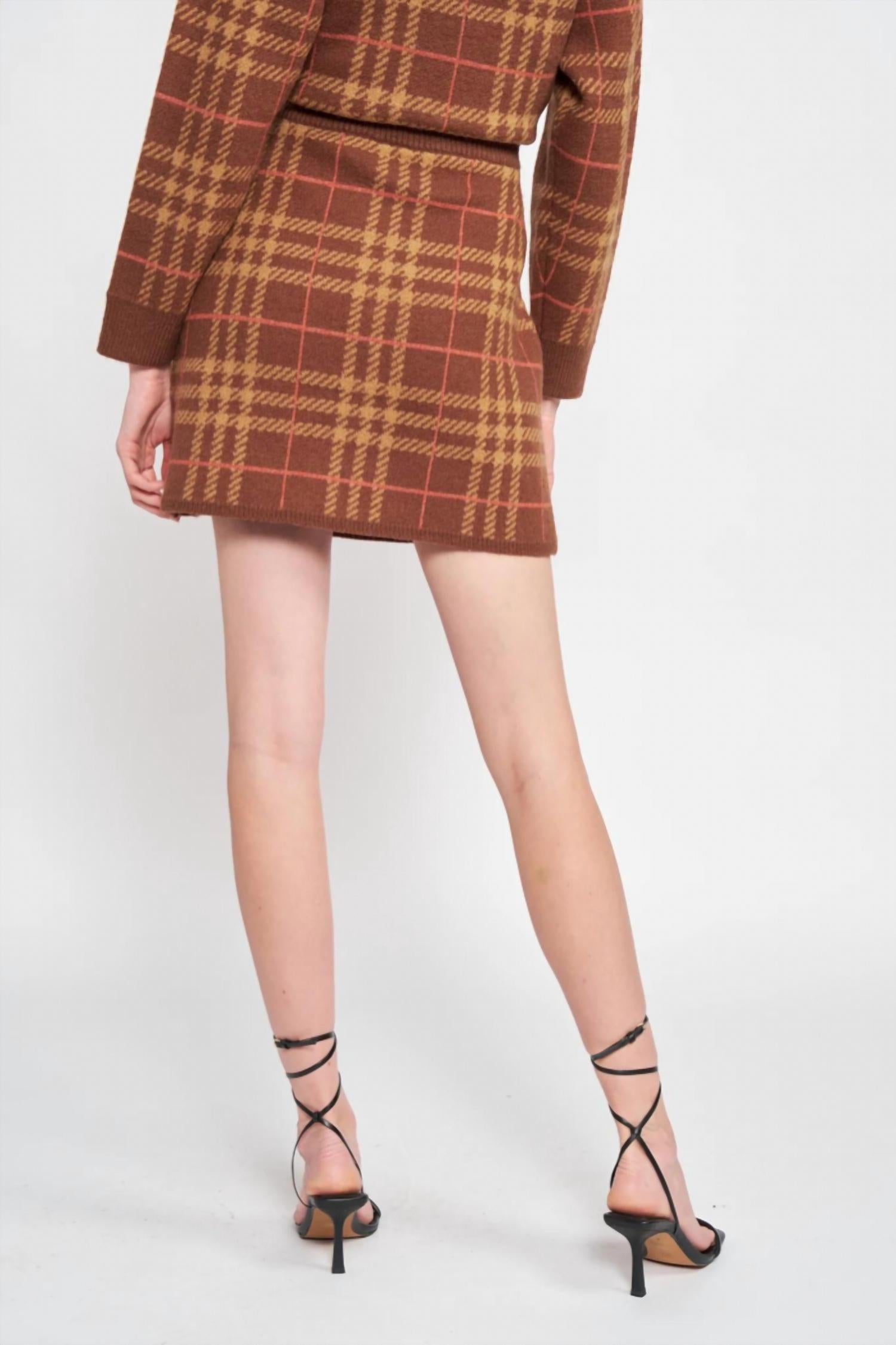 Юбка-свитер Bronte. 68% акрил, 20% нейлон, 12% полиэстер. Юбка-свитер в клетку. Ручная стирка. Импортная. Рост модели 5 футов 9 дюймов, размер small.