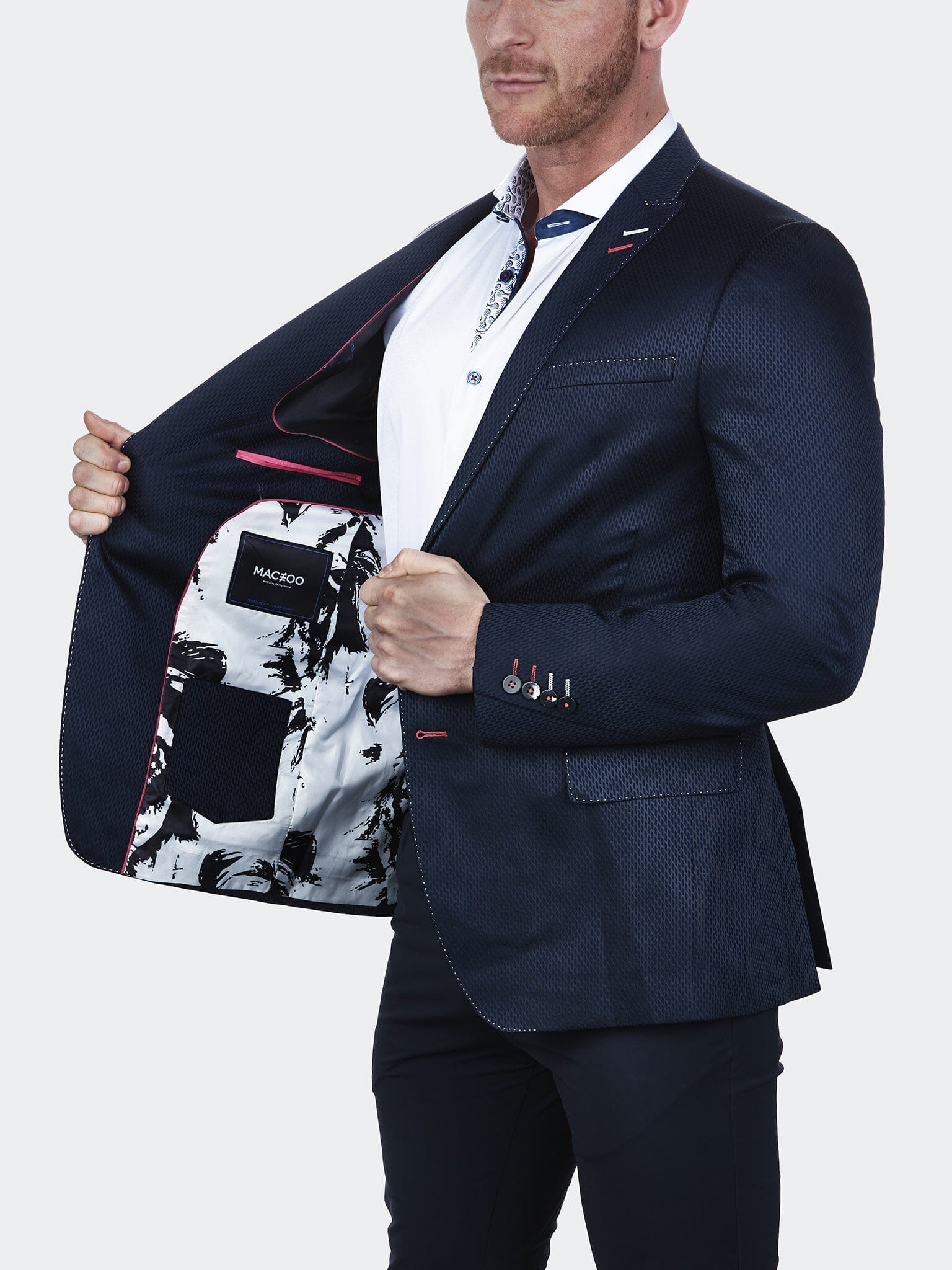 Заявите о своем стиле с помощью этой куртки с жаккардовым узором. Эта эффектная вещь с двухцветным жаккардовым узором идеально подойдет для вашего следующего вечернего выхода. Продолжайте совершенствоваться.