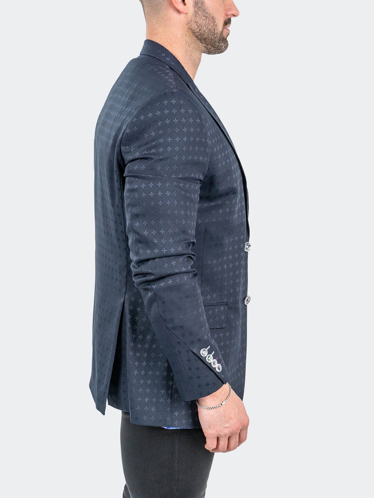 Заявите о своем стиле с помощью этой куртки с жаккардовым узором. Эта эффектная вещь с двухцветным жаккардовым узором идеально подойдет для вашего следующего вечернего выхода. Продолжайте совершенствоваться.