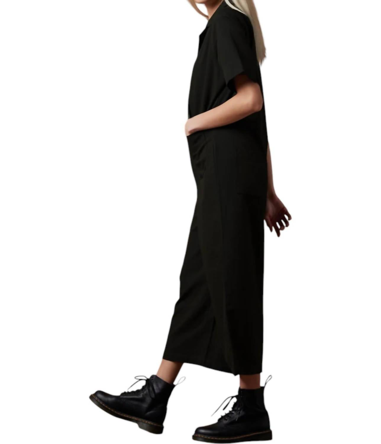 Изготовлено из 100% органического хлопкового твила, сертифицированного GOTS. Для воздухопроницаемости и долговечности. Комбинезон с короткими рукавами. Имеет свободный крой с широкими укороченными штанинами и удобными передними и задними карманами. Сделано в Индии. Дизайн сочетает элегантность и комфорт.