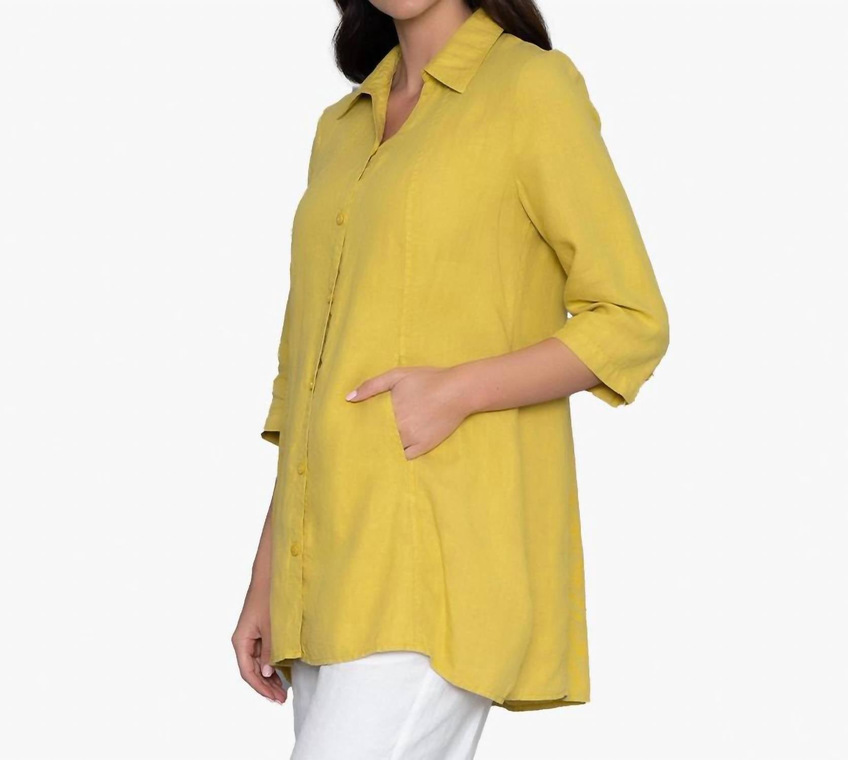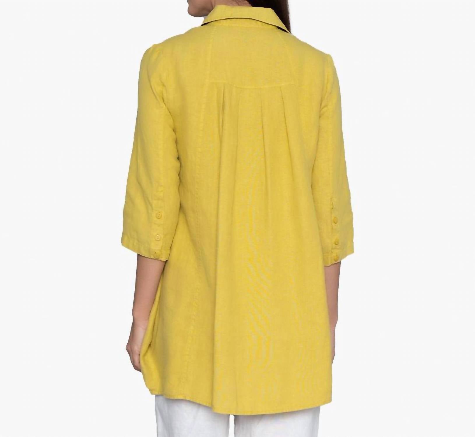 Архитектурный крой и вытачки сзади. Карманы в швах. Изготовлено из роскошного льна. Длина по спинке составляет приблизительно 33 дюйма для размера S. Модель выше ростом 5 футов 11 дюймов носит размер S, но эта туника одинаково хорошо смотрится и на невысоких женщинах.