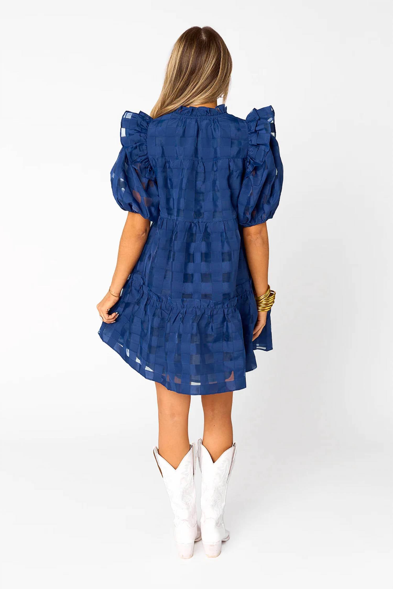 Идеальное мини-платье для теплых месяцев. Украсьте свой гардероб коротким платьем Ensley от BUDDYLOVE, модной вещью в шикарном темно-синем цвете. Это мини-платье с короткими рукавами-фонариками и игривым V-образным вырезом с завязкой, идеально сшитое для супер-струящейся посадки. Платье из 100% полиэстера, длина 31,5 дюйма от плеча до подола и может похвастаться слегка оборчатым подолом с однотонным клетчатым рисунком. Оно разработано для непринужденной носки и имеет удобный стиль надевания.