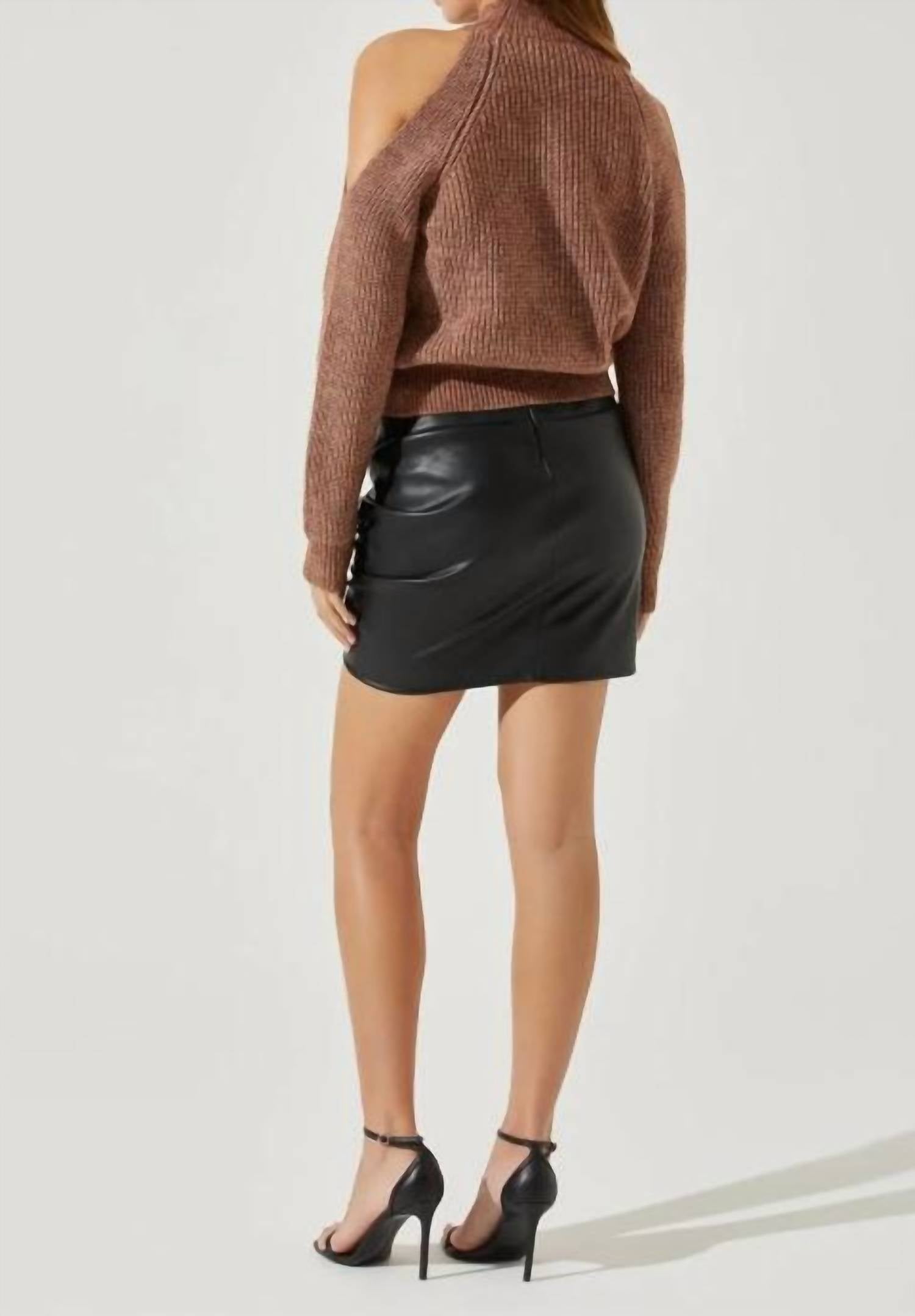 Ложный воротник и открытые плечи. Длинные рукава и свободный крой. Только химчистка. 93% полиэстер, 7% шерсть. Длина - 21 7/8". На модели размер S. Рост модели - 5 футов 9 дюймов.