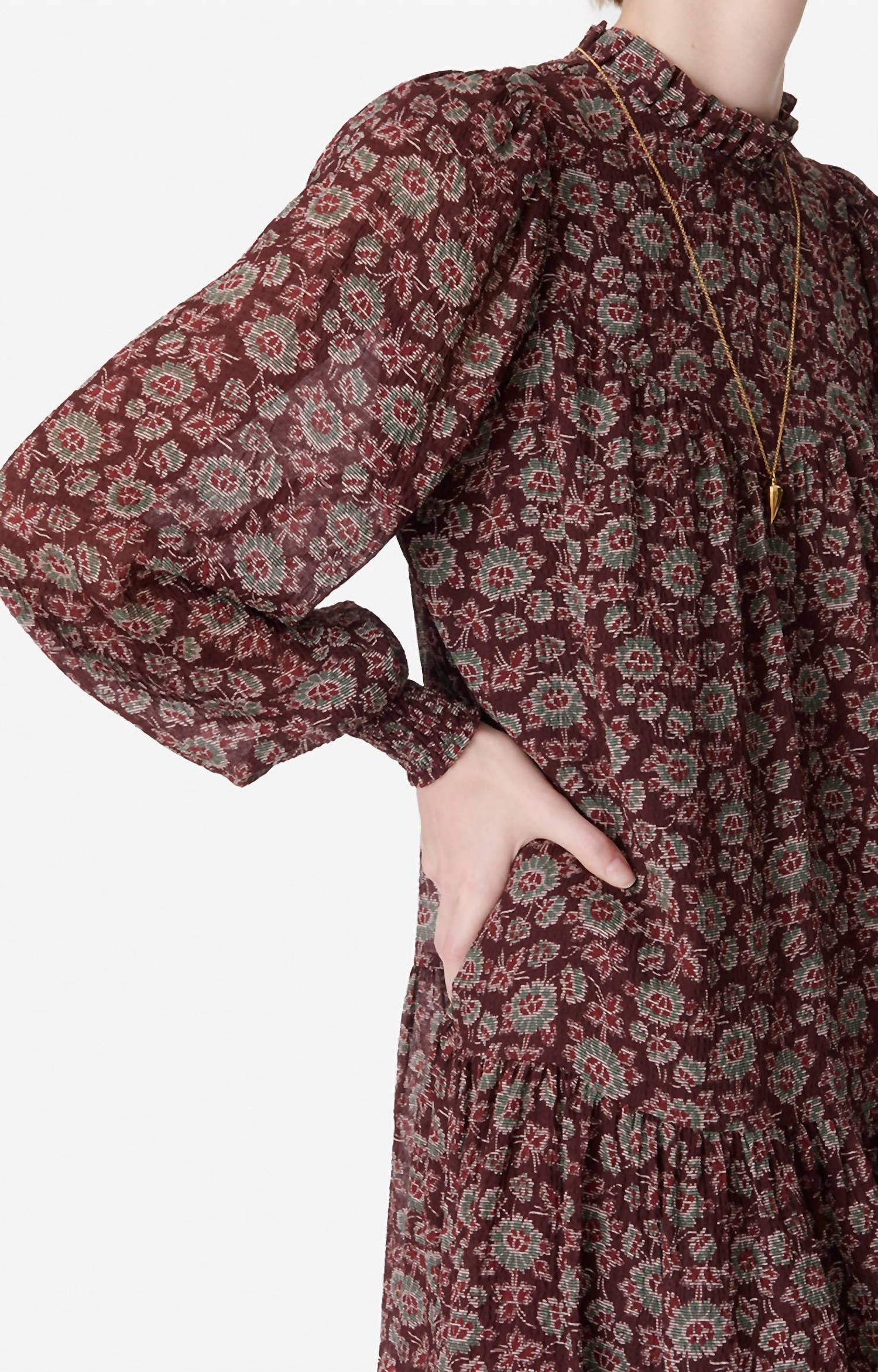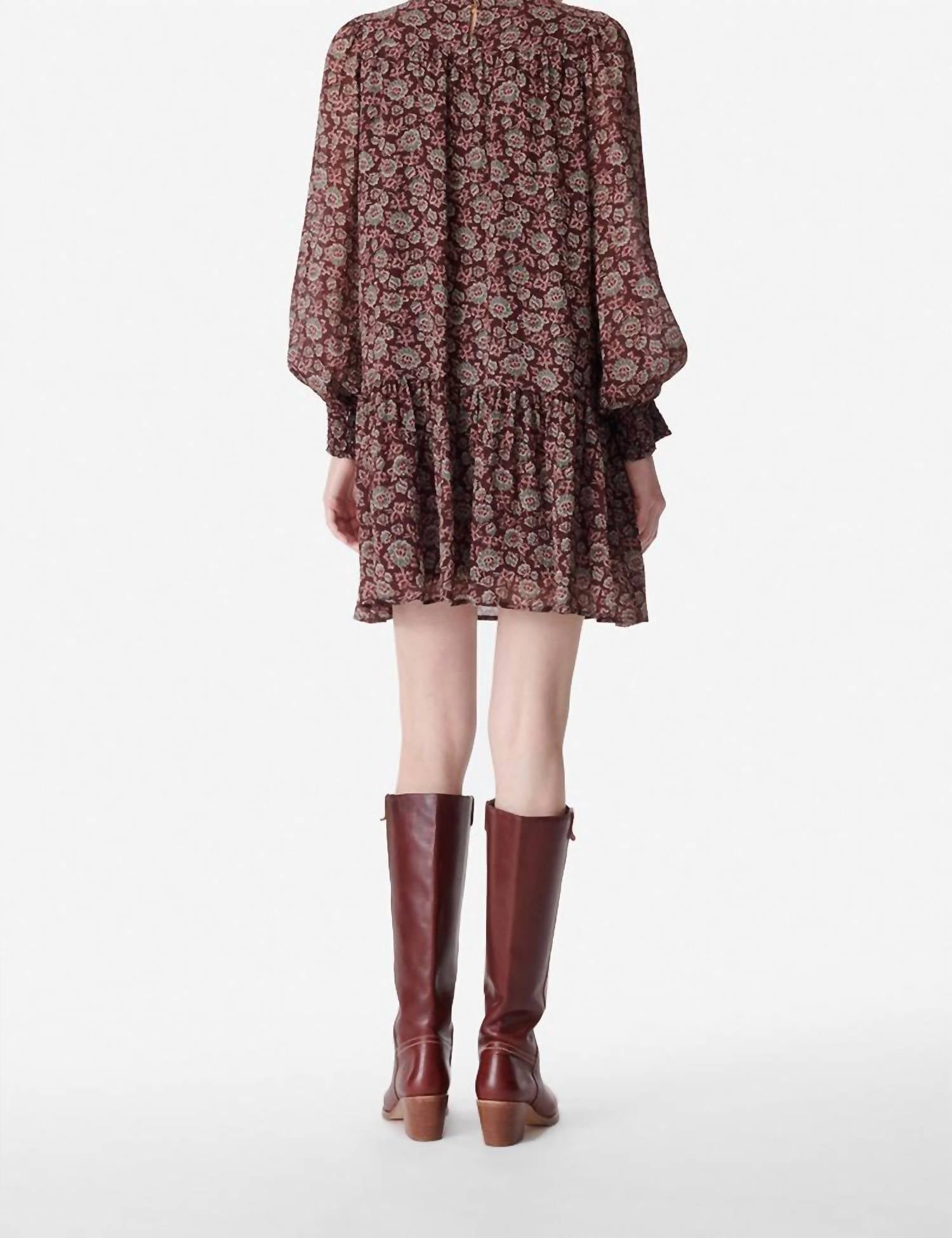 Украшено оборкой внизу. Особенности - Круглый вырез горловины украшен небольшими оборками. Длинный зауженный рукав. Сборки на манжетах. Оборка по низу. Застегивается на золотую пуговицу сзади. Ткань - Основной материал - 60% вискоза, 40% шелк. Основная подкладка - 100% вискоза. Уход - Не стирать. Не отбеливать. Не сушить в стиральной машине. Гладить при максимальной температуре 110°C. Изделие можно подвергать химчистке.
