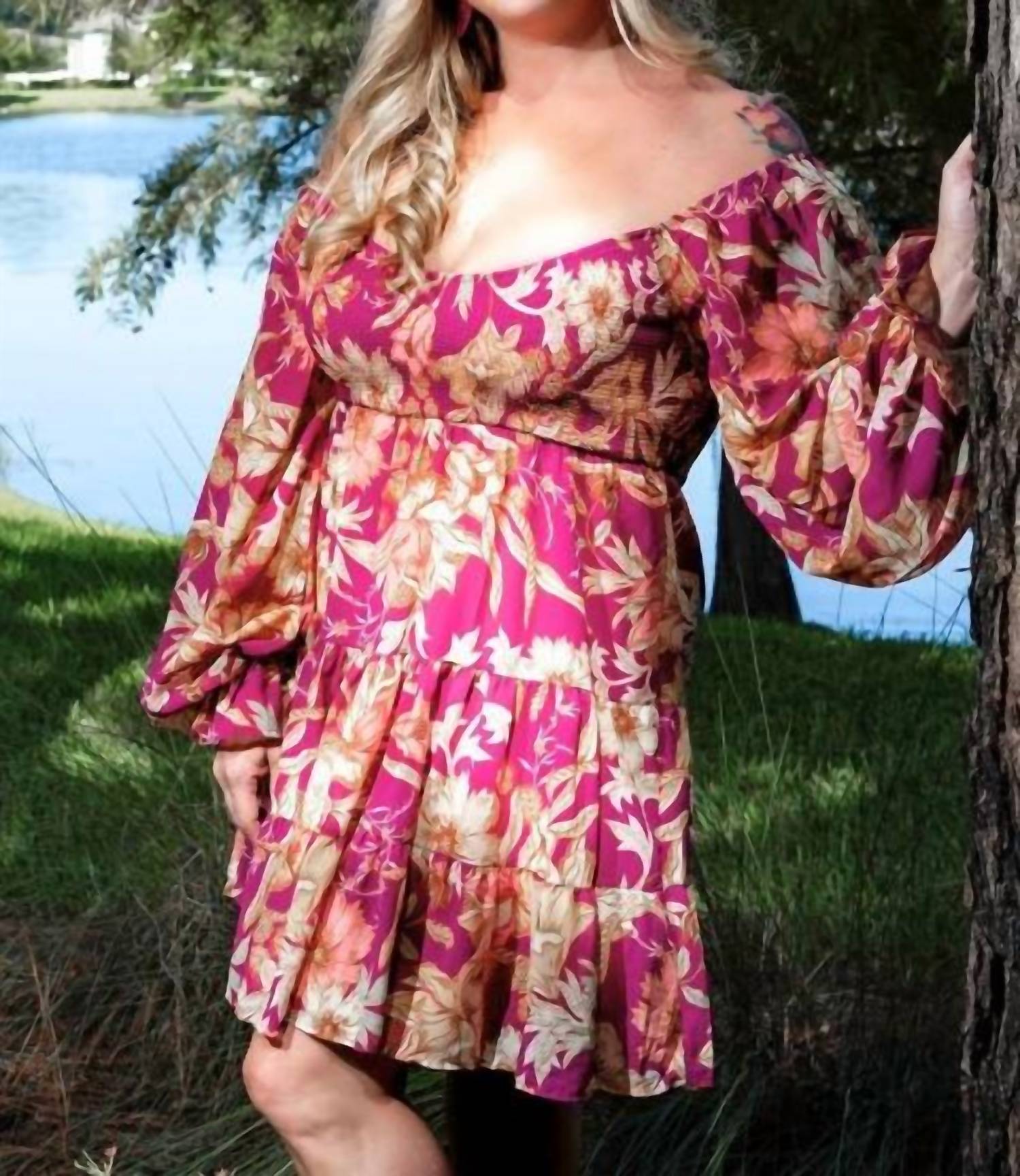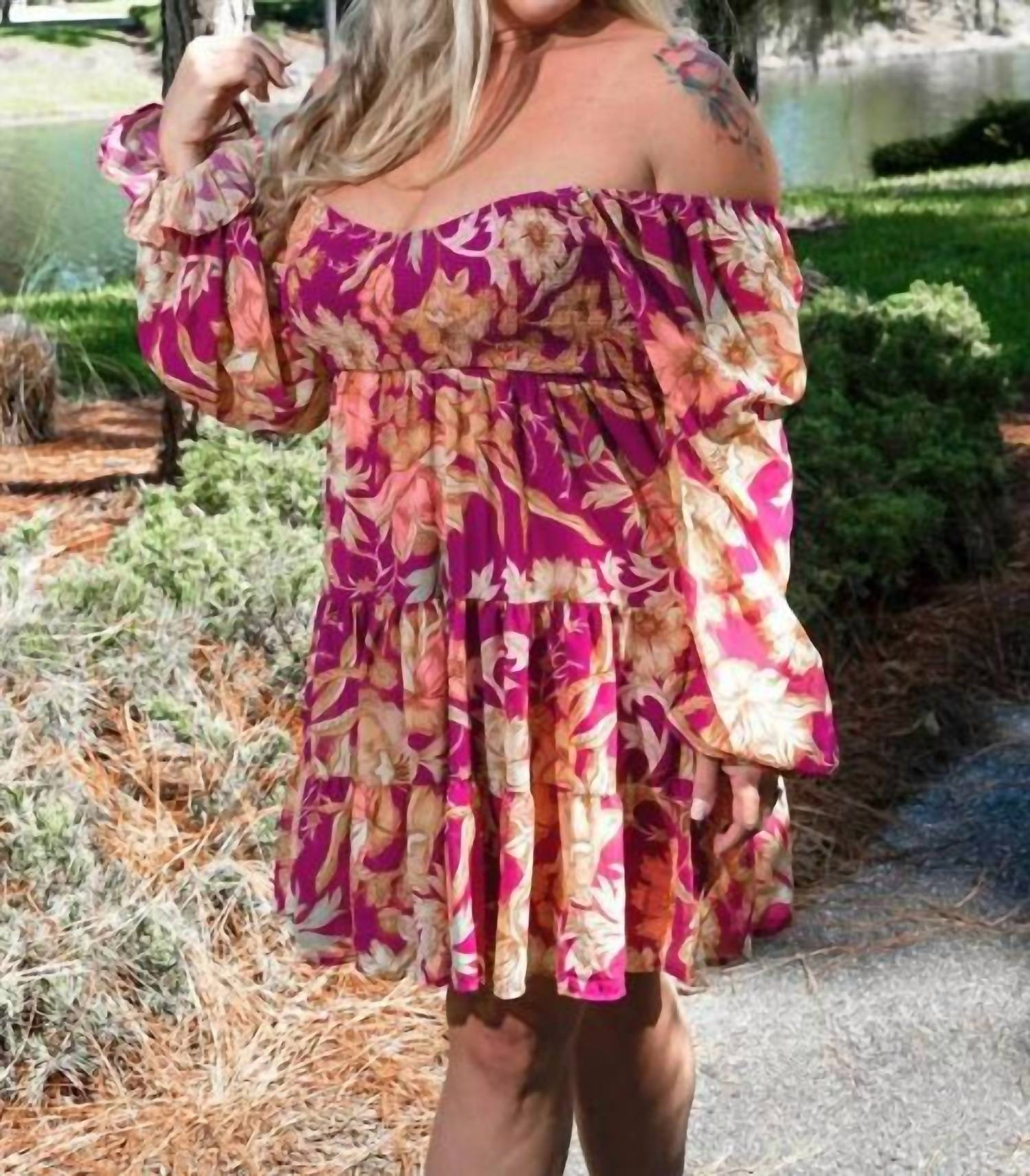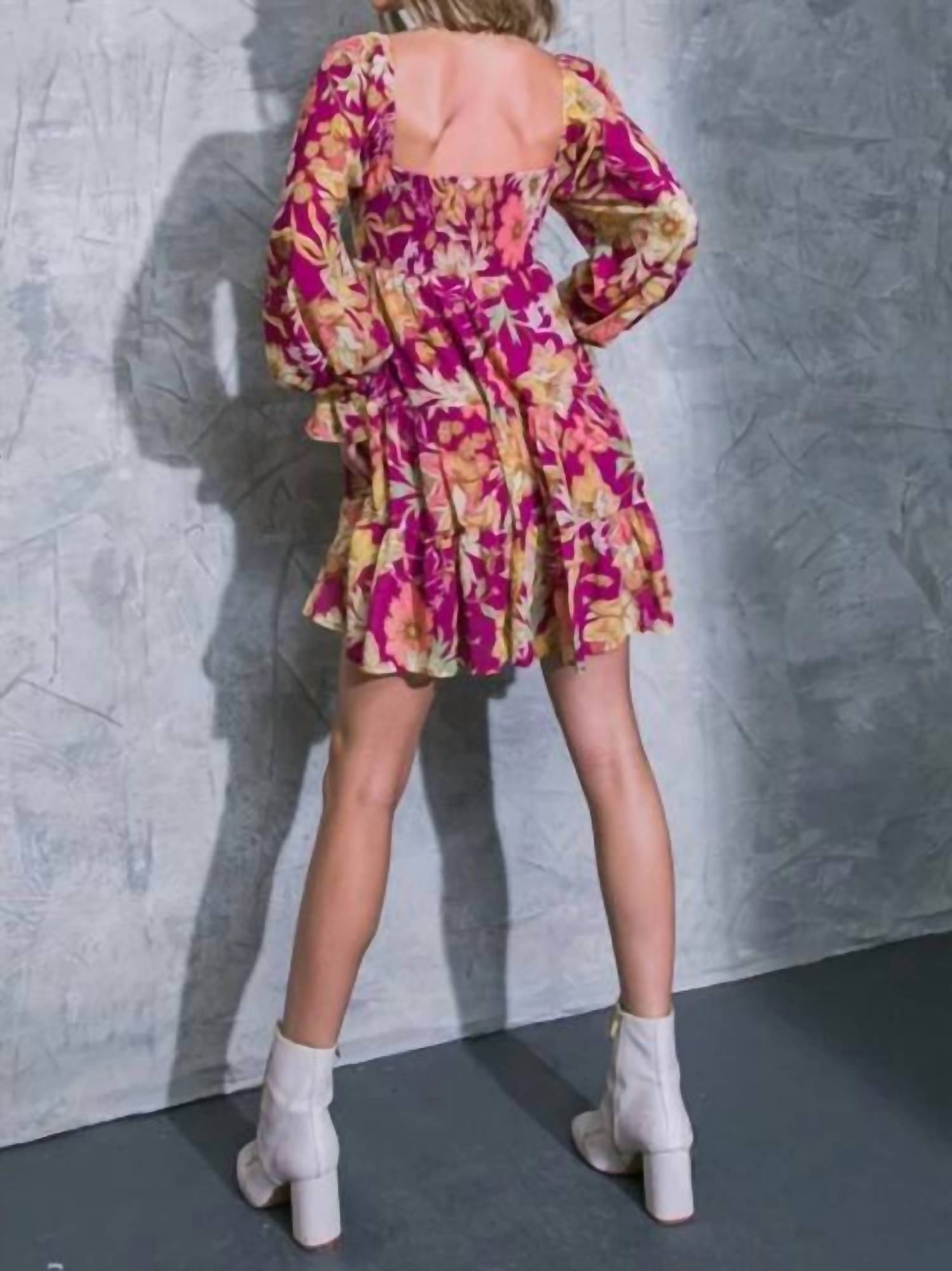 Это очаровательное мини-платье в ярком пурпурном цвете может похвастаться длинными рукавами с оборками по краям, предлагая причудливый стиль для любого сезона. Изготовленное из 100% полиэстера, цветочное платье с завышенной талией подчеркивает вашу фигуру с многоуровневым низом для дополнительного движения. Это импортное платье с подкладкой для комфорта легко ухаживать, стирая его в стиральной машине в холодной воде.